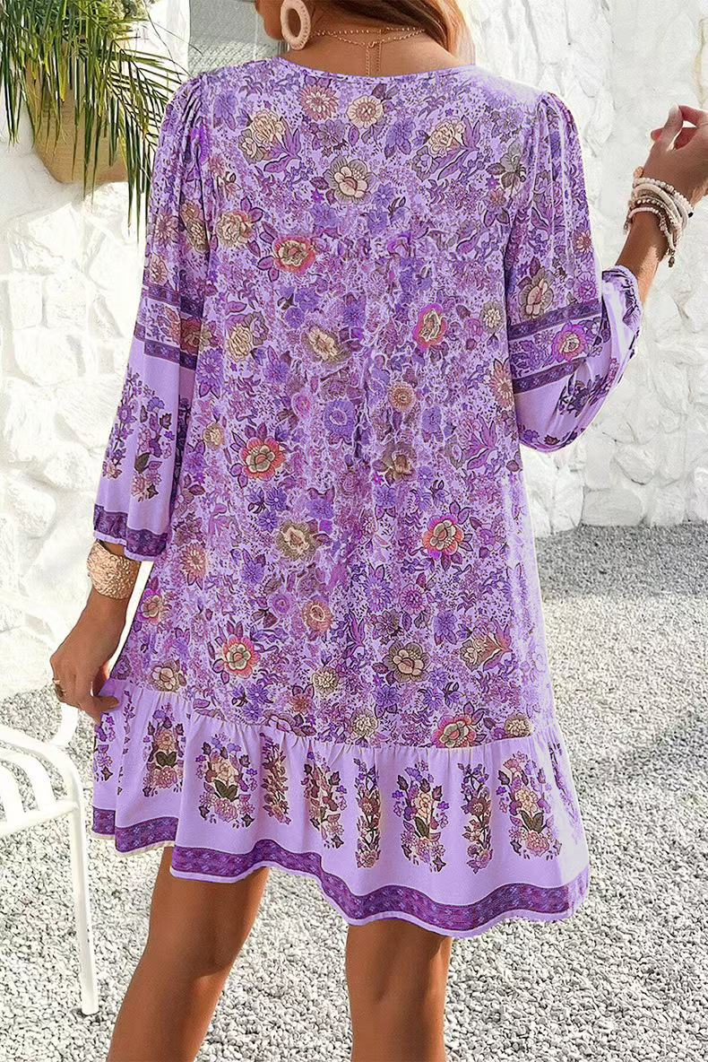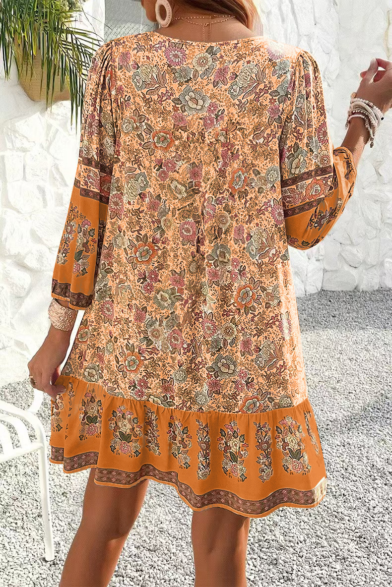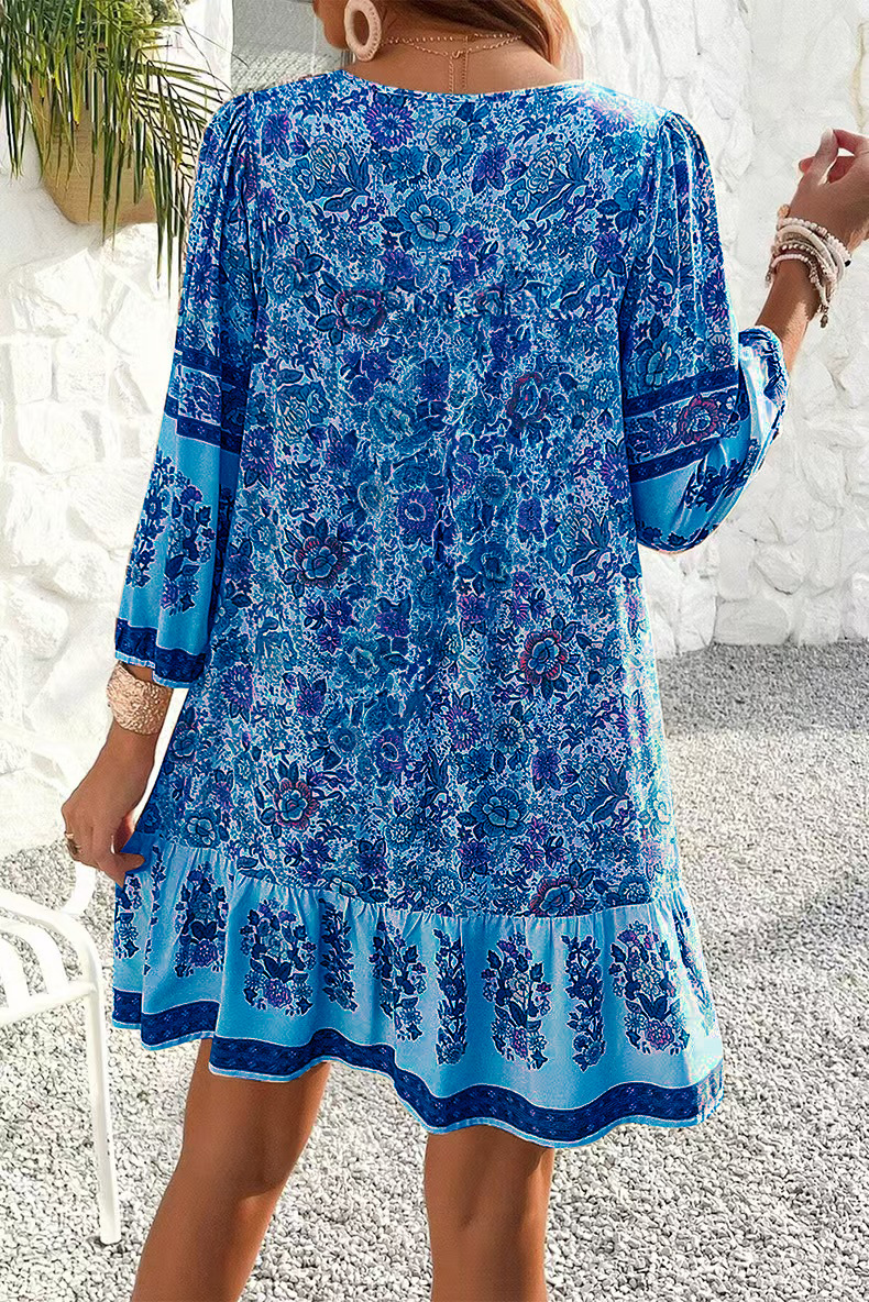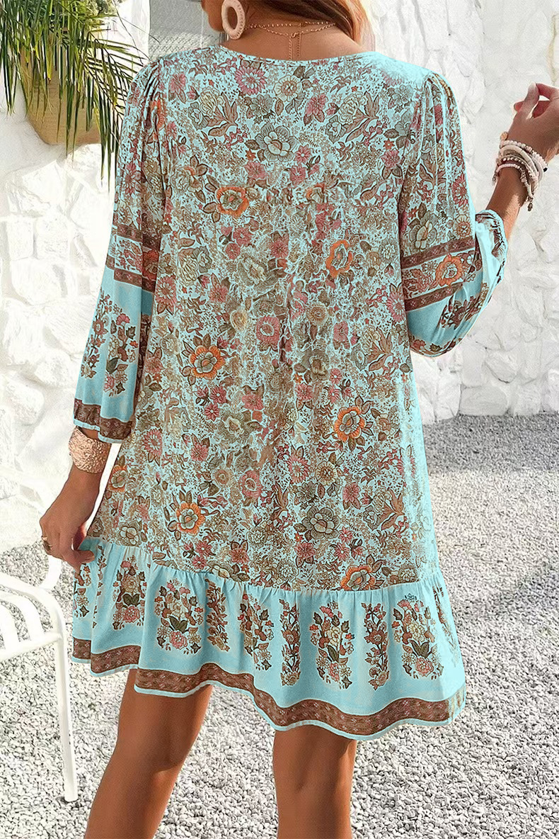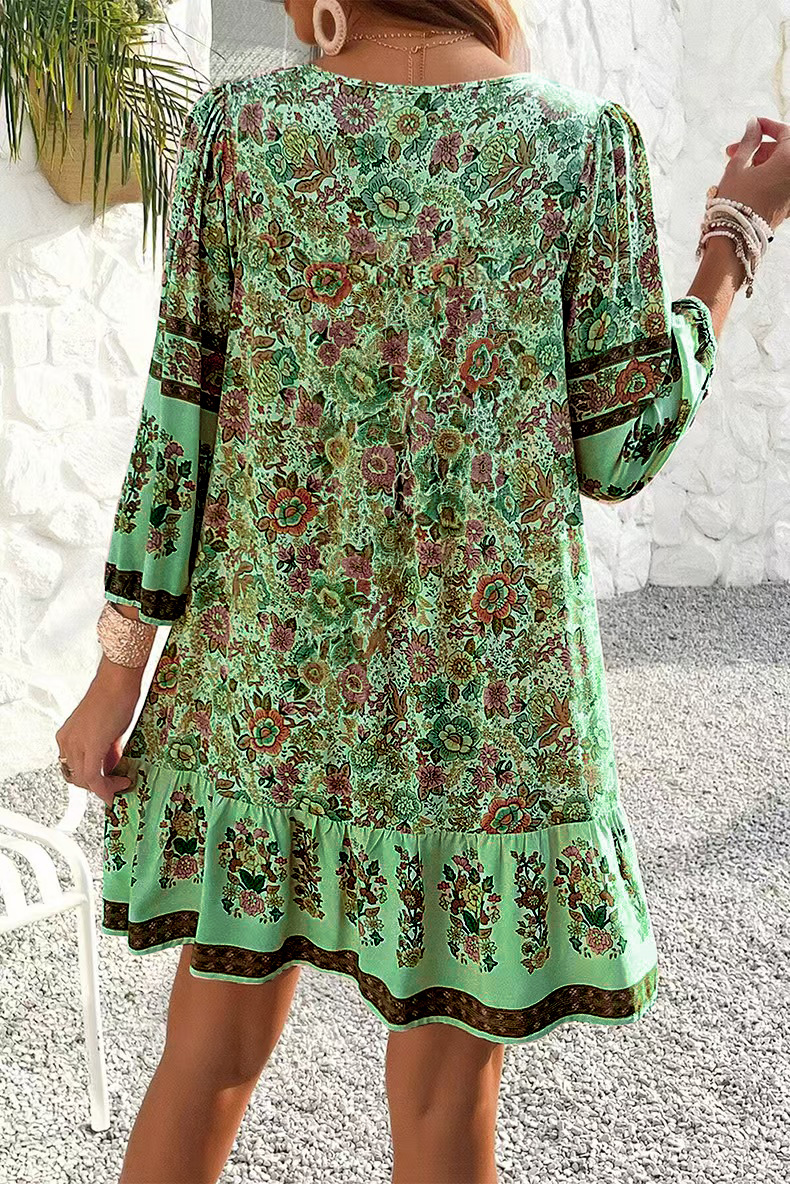 재고 있음 2025 유럽과 미국의 국경 간 프린트 셔츠 대외 무역 봄 여름 캐주얼 보헤미안 휴가 v 넥 드레스 여성용스토어 가기
