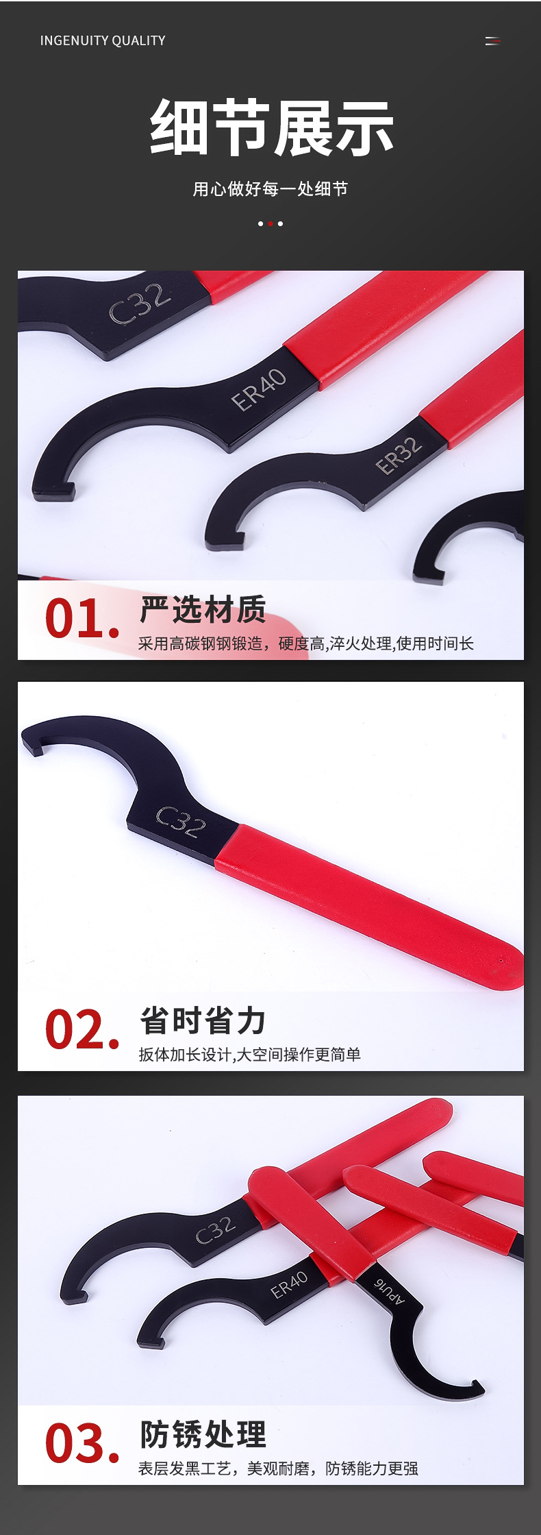 ER 초승달 렌치 도매 핸드 후크 렌치 다중 사양 기계 공작 기계 4피스 세트 6피스 세트 C형 CNC 렌치 제조업체스토어 가기