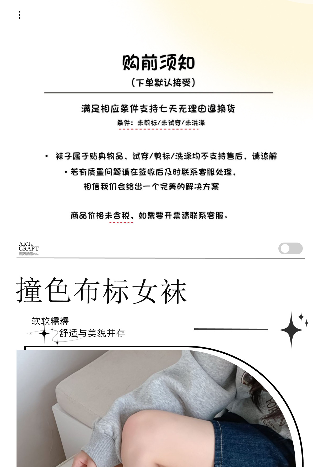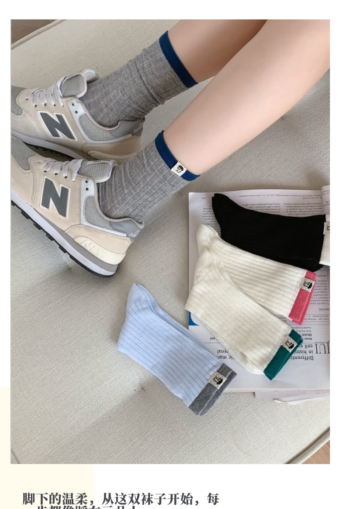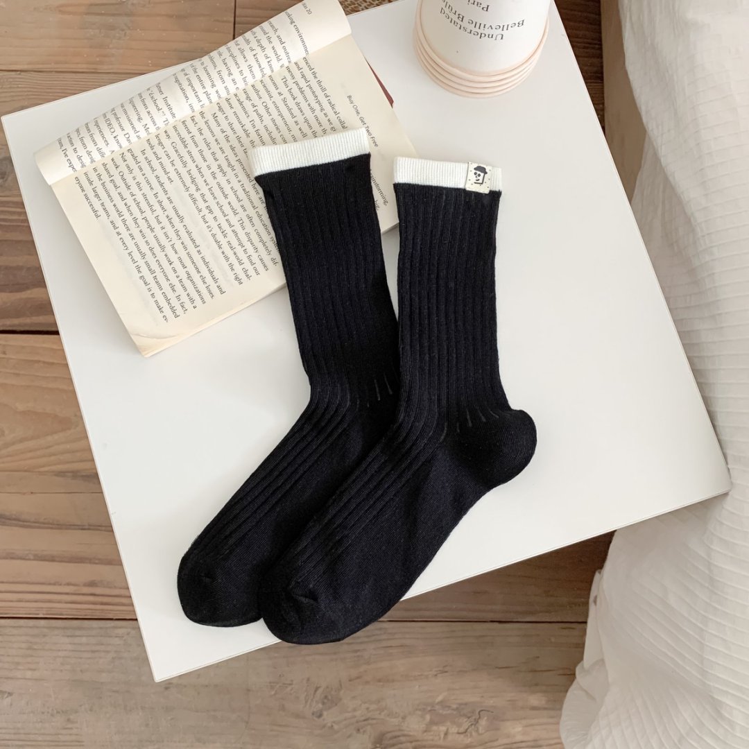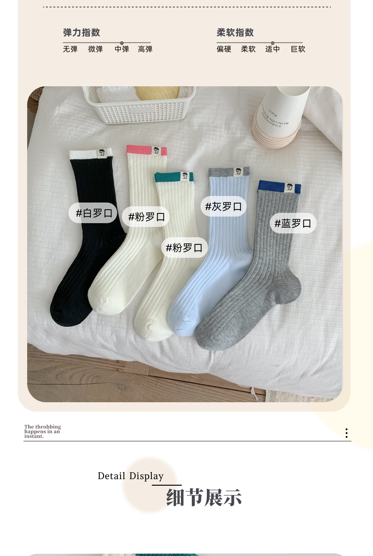 MEKKI 양말 여자 일본 더블 바늘 콘트라스트 컬러 천 라벨 미드 튜브 양말 한국 여름 얇은 여자 양말 올매치 필 양말스토어 가기