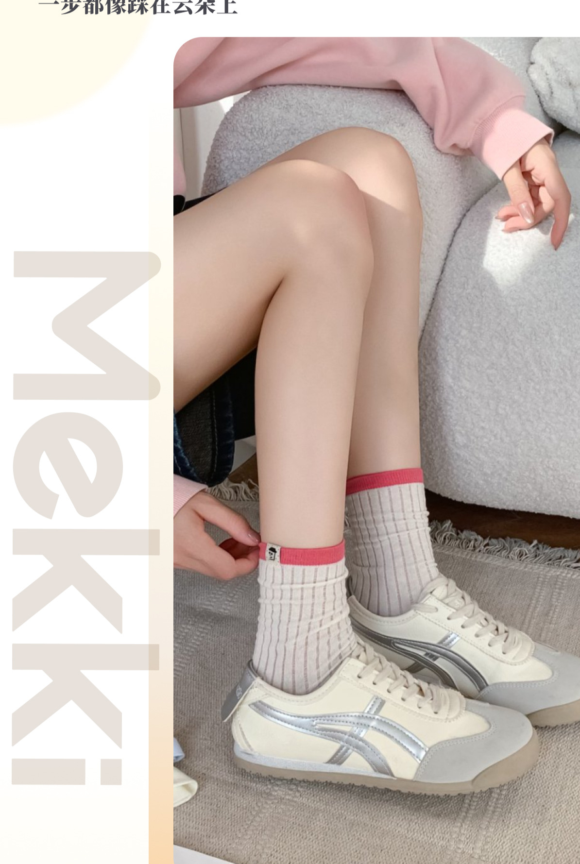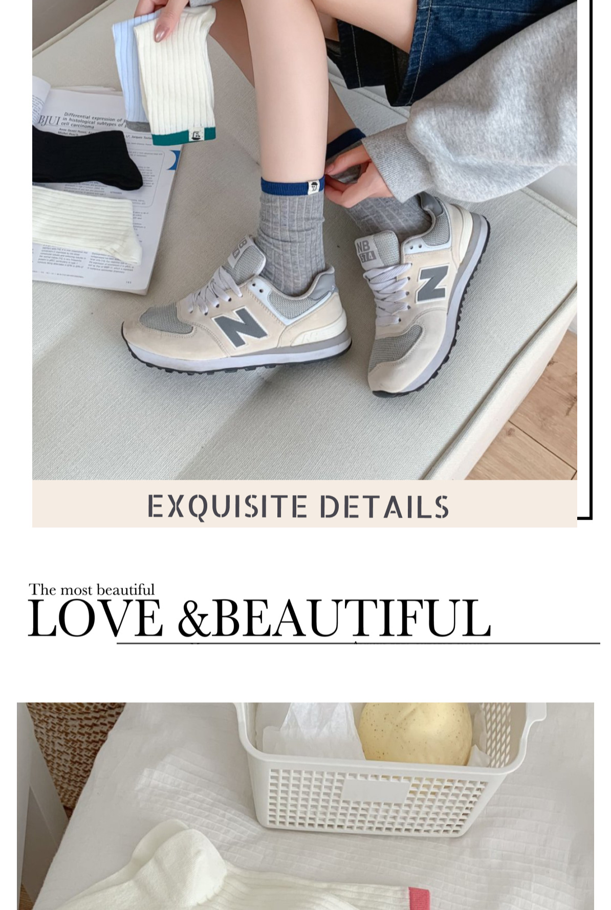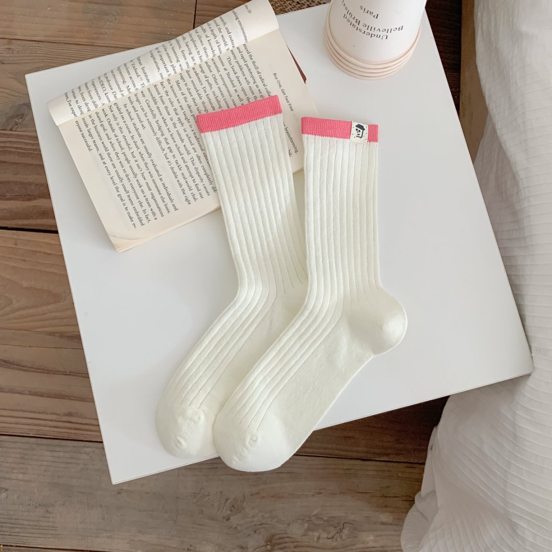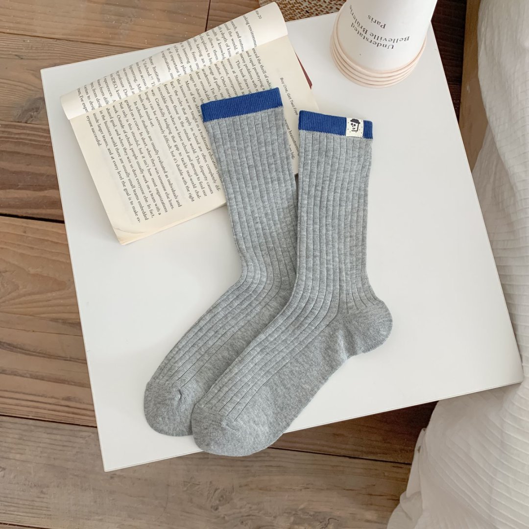 MEKKI 양말 여자 일본 더블 바늘 콘트라스트 컬러 천 라벨 미드 튜브 양말 한국 여름 얇은 여자 양말 올매치 필 양말스토어 가기