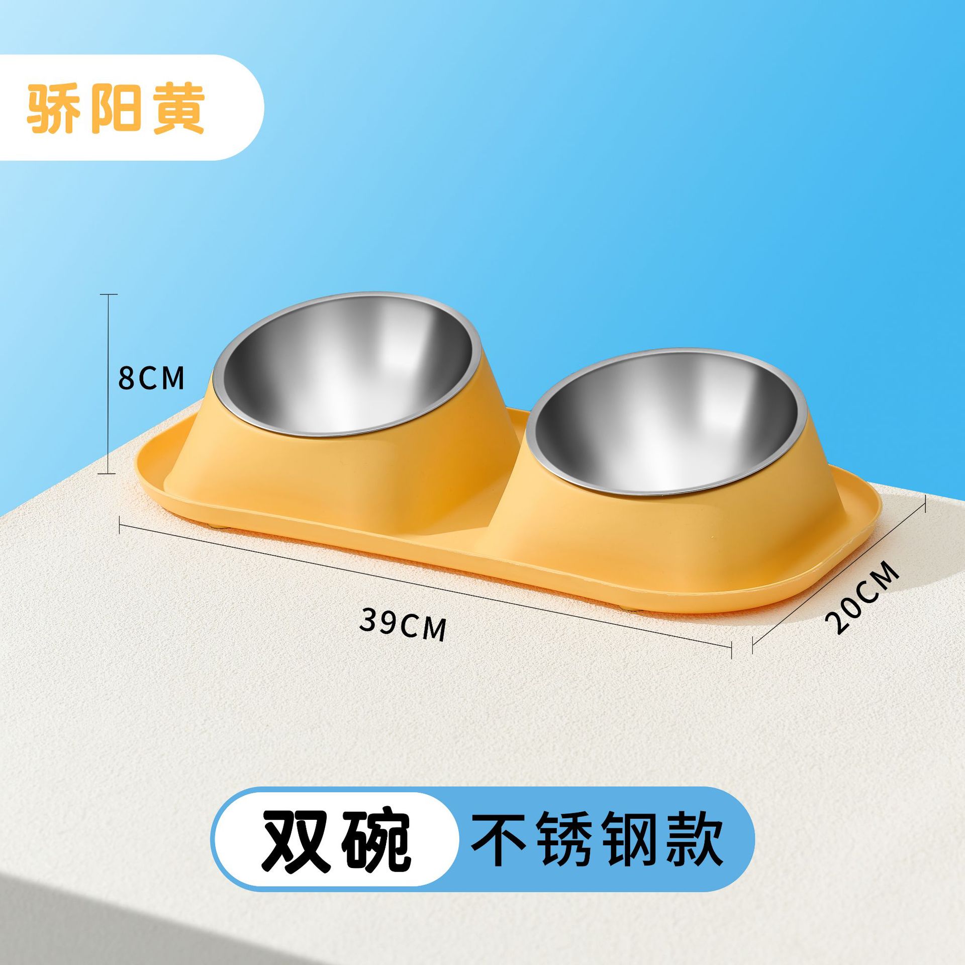 고양이 목 보호 스테인레스 스틸 더블 그릇 안티 노크 고양이 그릇 개 대용량 누출 방지 개 그릇 고양이 애완 동물 그릇