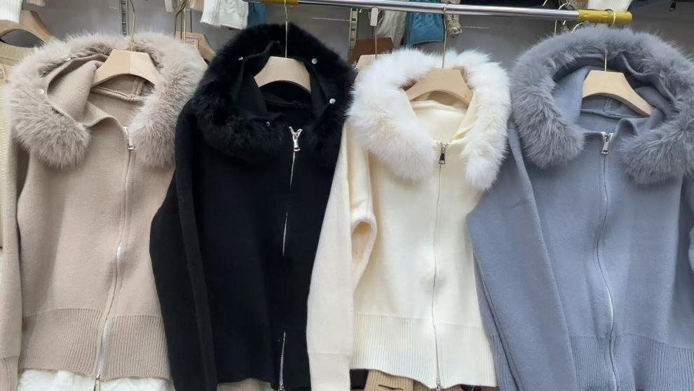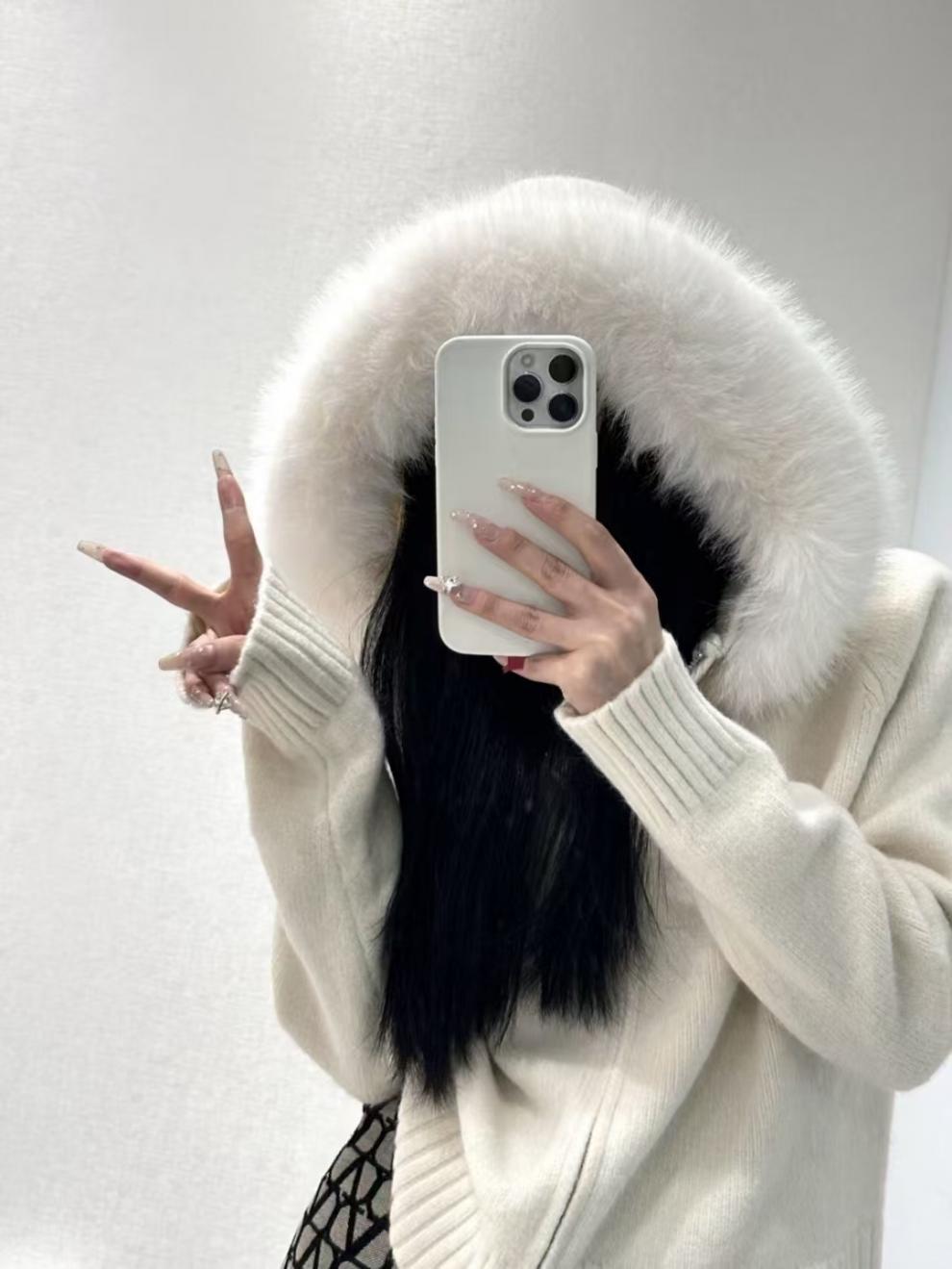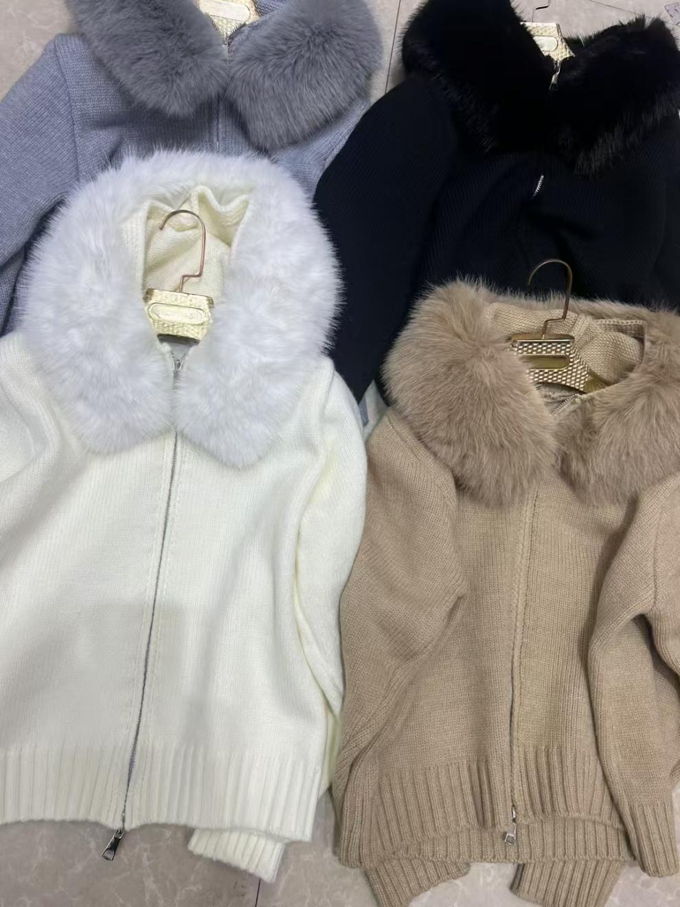 25 가을 겨울 신상 후드 숏 패션 니트 가디건, 작은 사이즈 여성용 모조 여우털 칼라 코트 스웨터스토어 가기