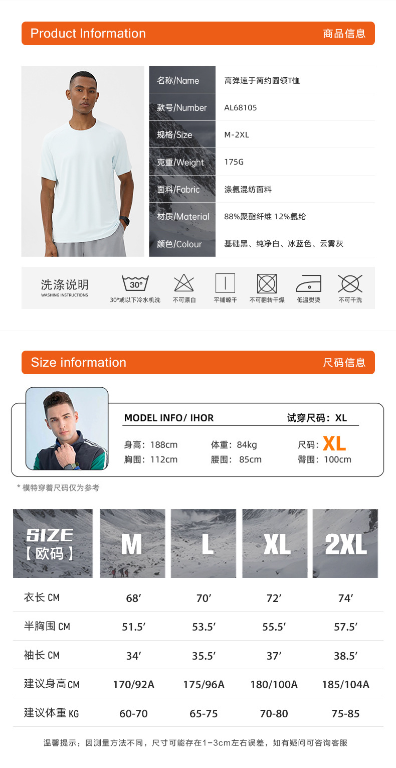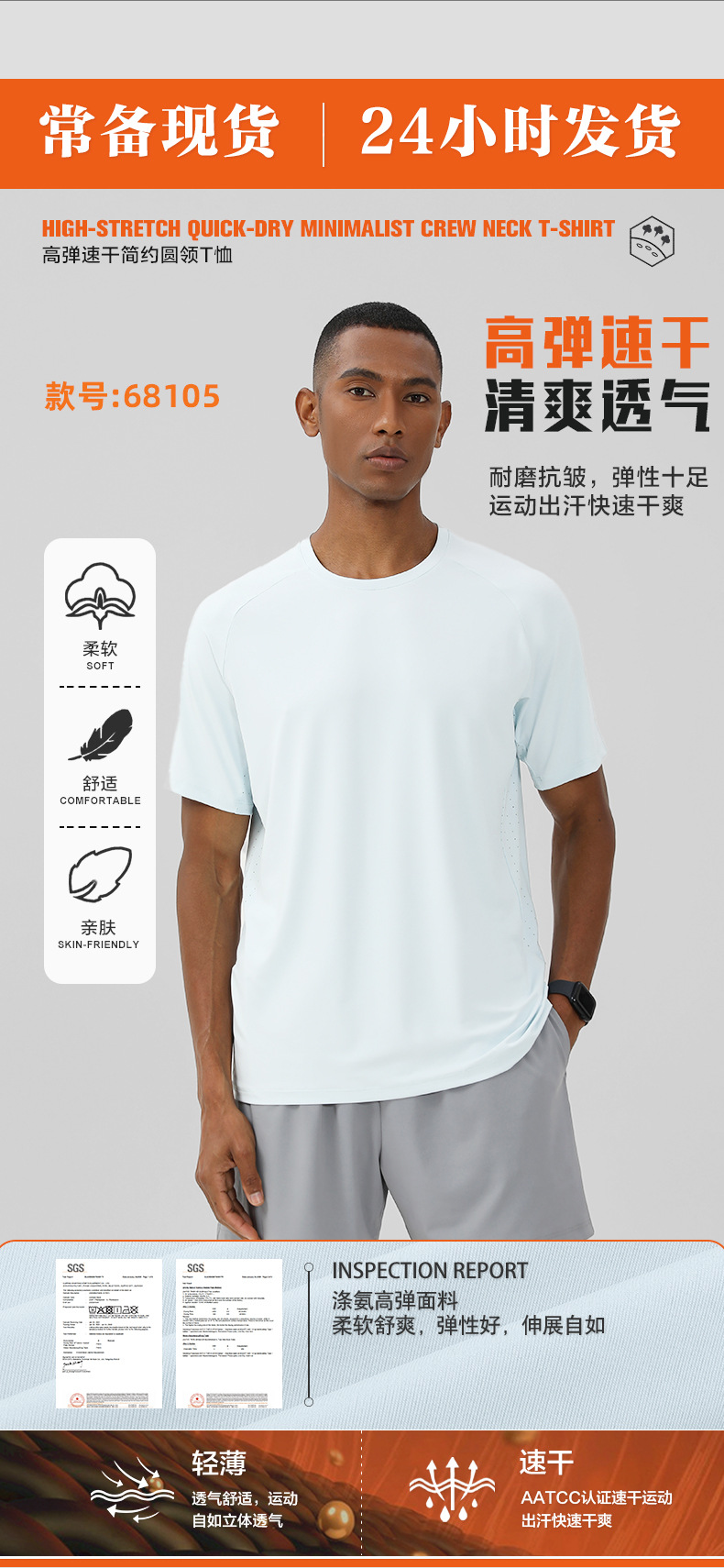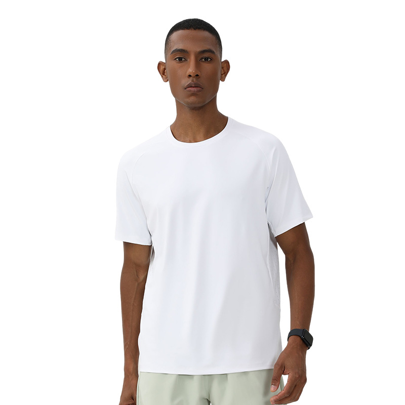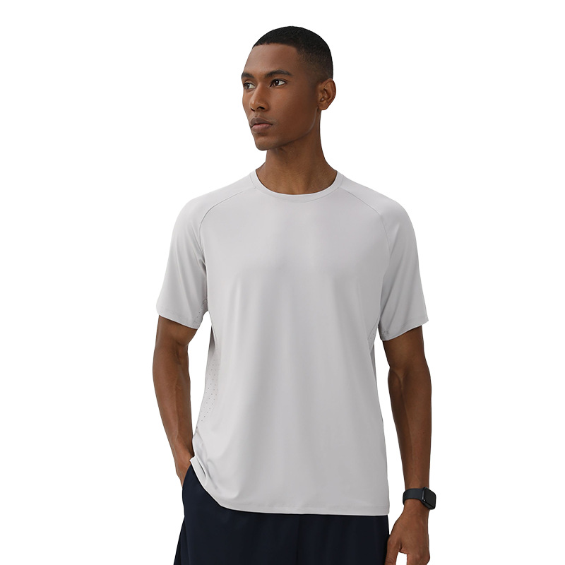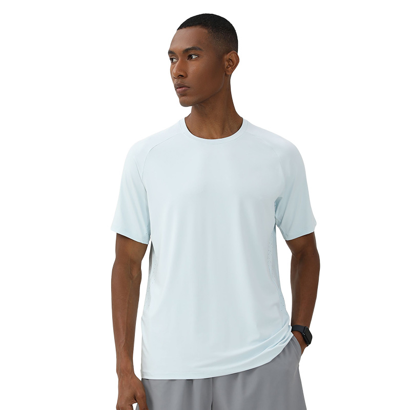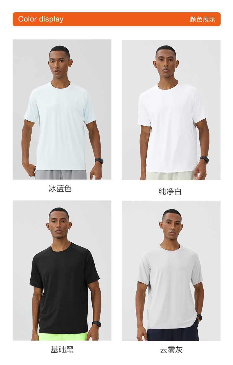 국경 간 새로운 HH 빠른 건조 스포츠 티셔츠 높은 탄성 솔리드 컬러 남성용 짧은 소매 언더암 펀칭 통기성 피트니스 짧은 소매
