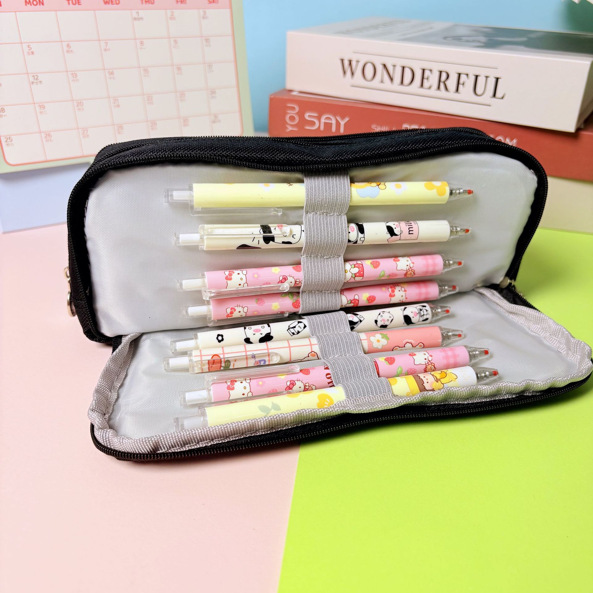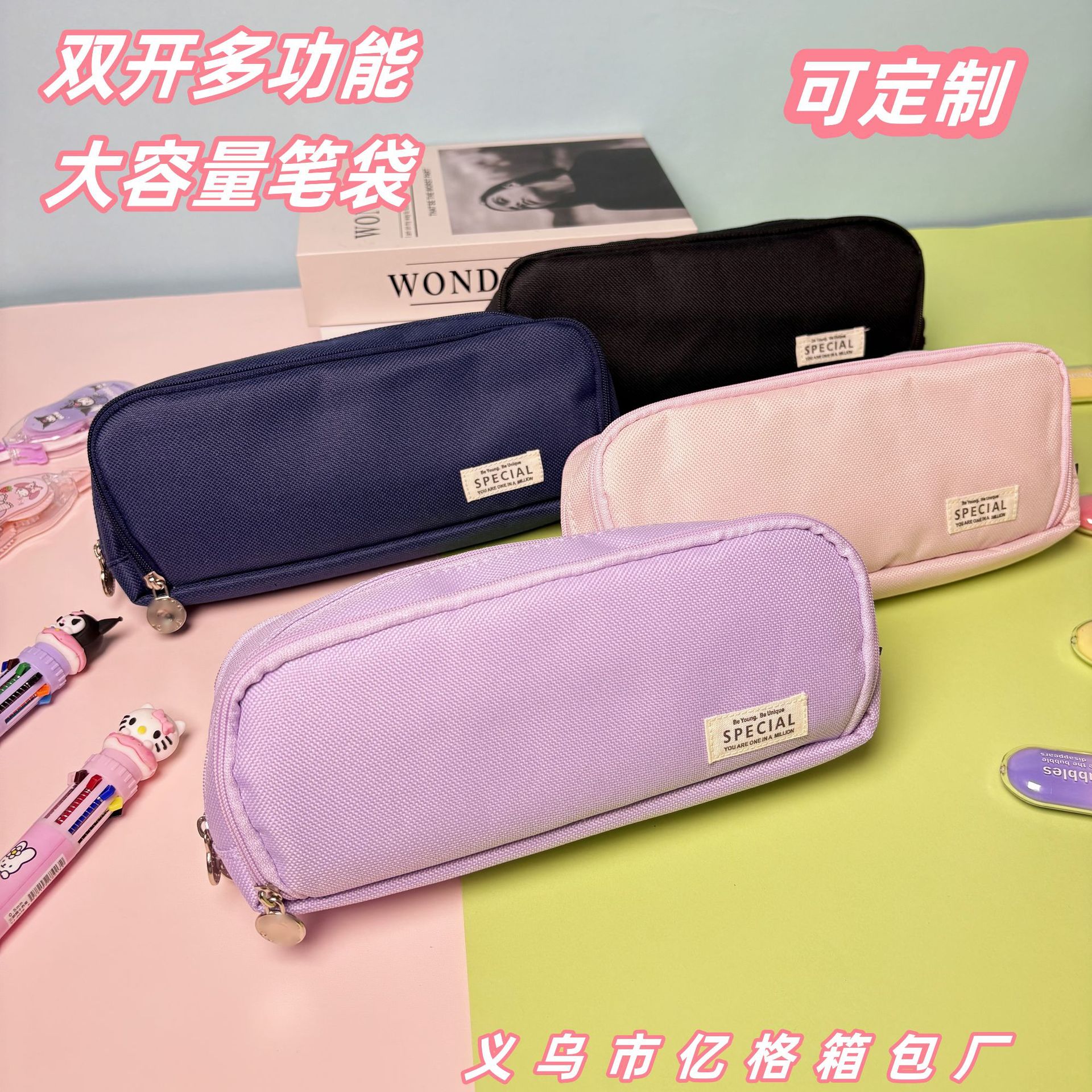 국경을 넘는 양문형 대용량 필통, 한국형 중고등학생용 문구함, 3단 다기능 옥스포드 천 휴대용