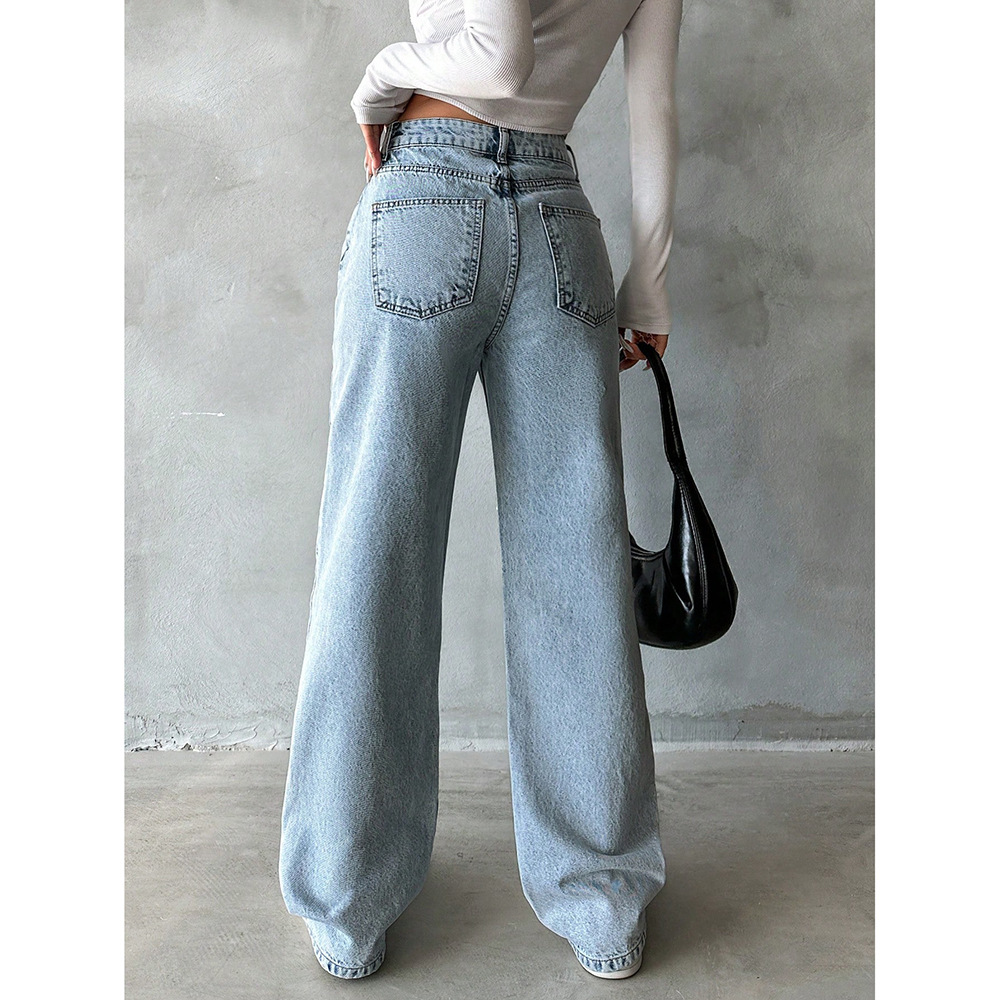 국경 간 대외 무역 제조 업체는 유럽과 미국의 복고풍 드레이프 청바지 여성용 하이 웨이스트 와이드 레그 루즈 스트레이트 롱 팬츠를 직접 판매합니다.