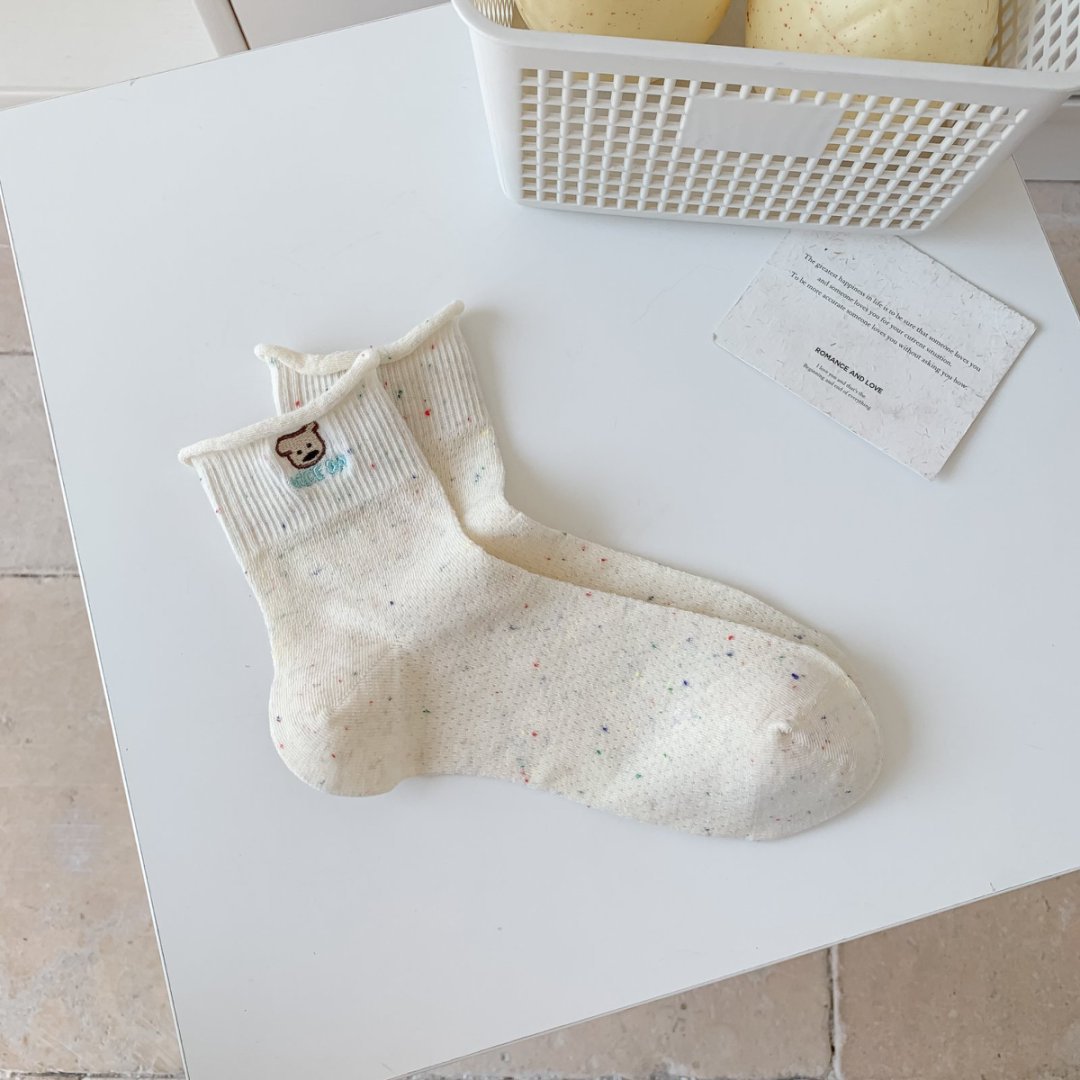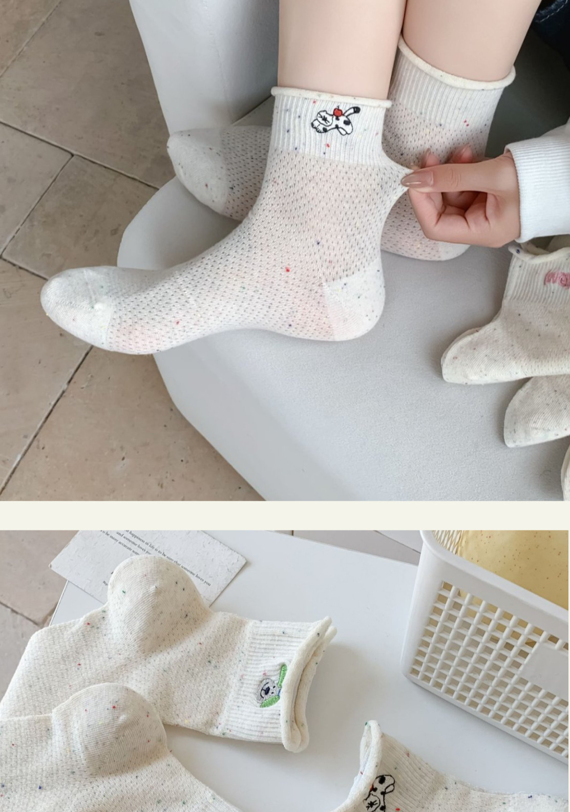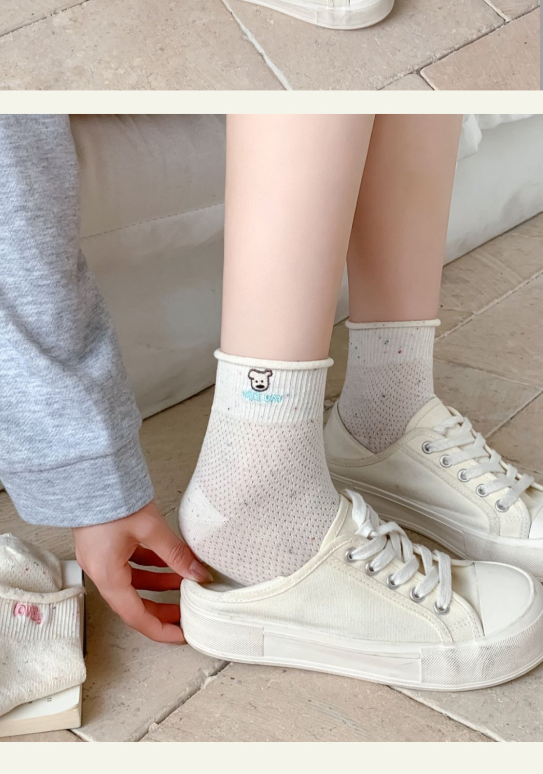 양말 여성 봄 여름 얇은 종아리 중간 양말 트렌디 다용도 메쉬 만화 자수 컬링 여성 양말 아이디어 원사면 양말스토어 가기