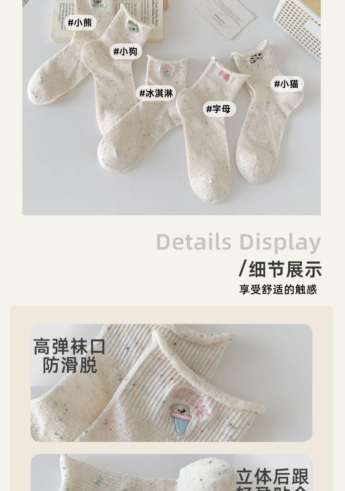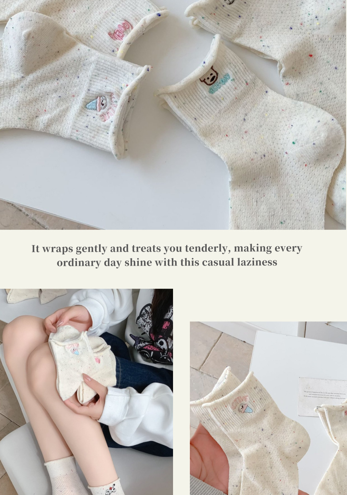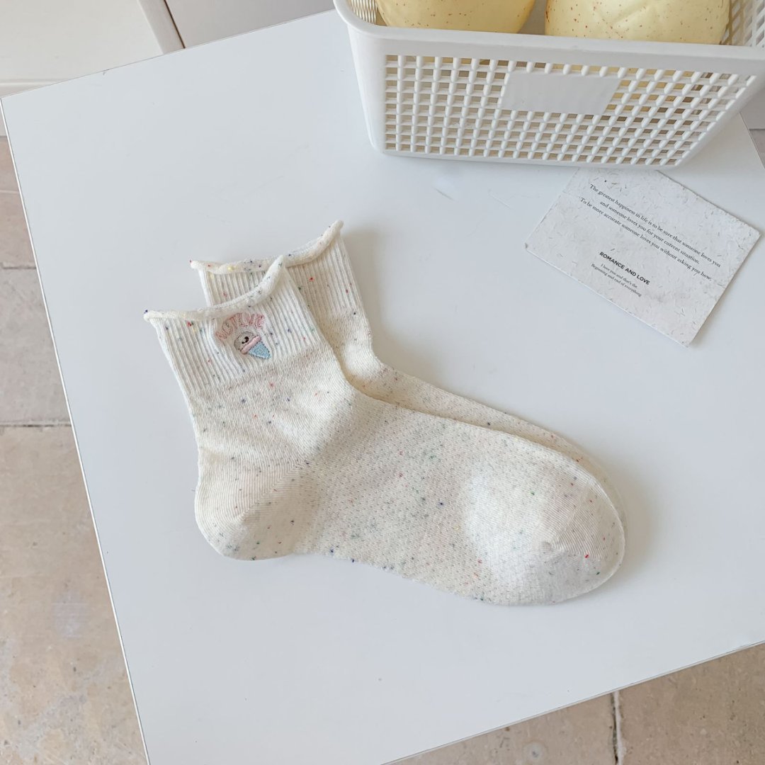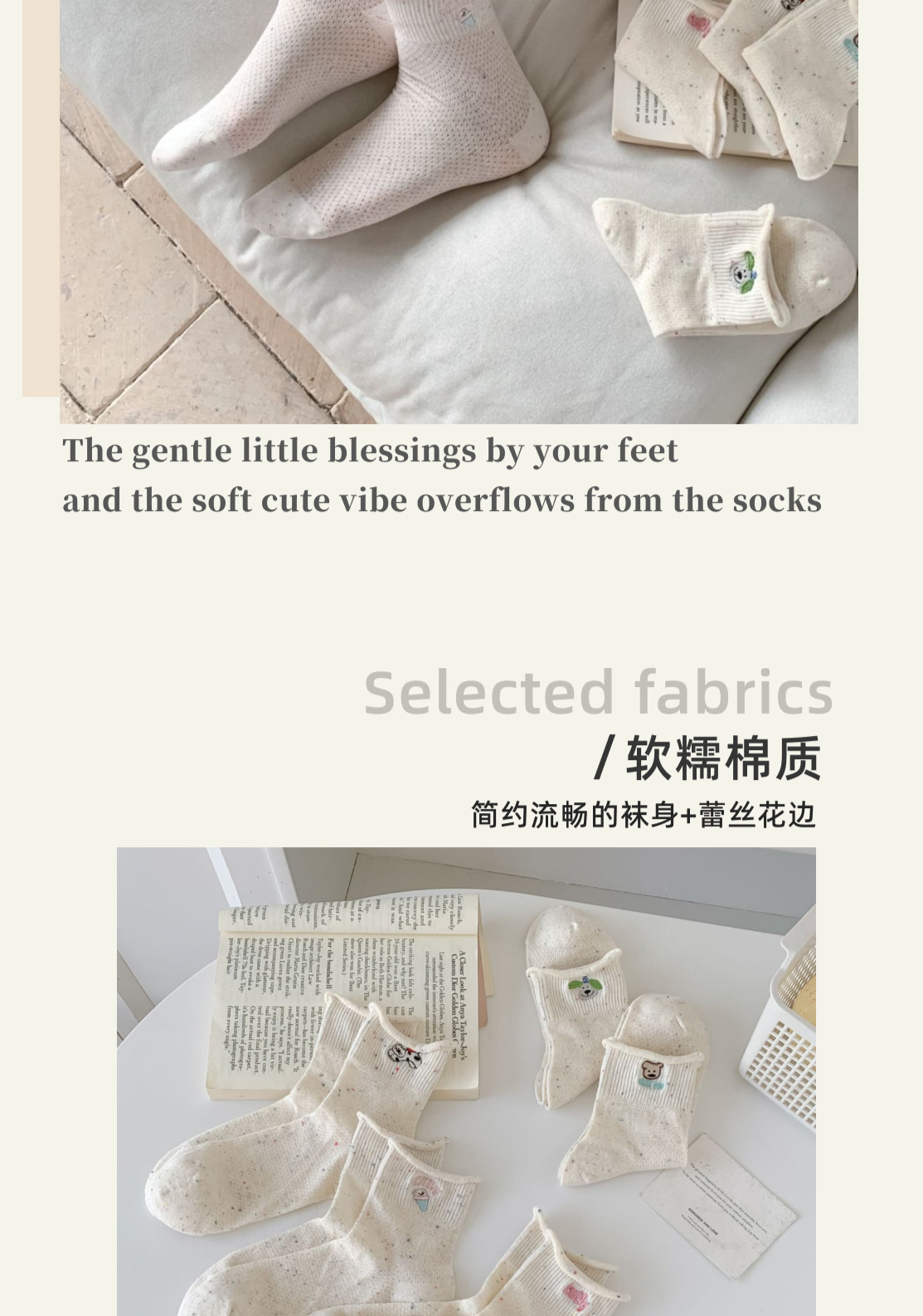 양말 여성 봄 여름 얇은 종아리 중간 양말 트렌디 다용도 메쉬 만화 자수 컬링 여성 양말 아이디어 원사면 양말스토어 가기
