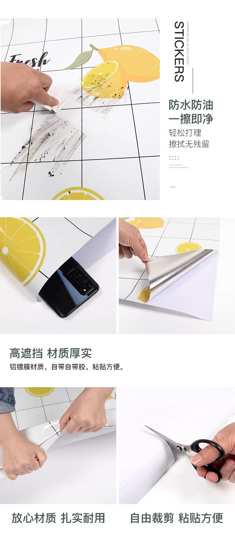 도매 주방 스티커, 내유성, 방수성, 고온 방지 스토브 조리대 벽지, 자체 접착식 두꺼운 얼룩 방지 벽지 사용자 정의스토어 가기
