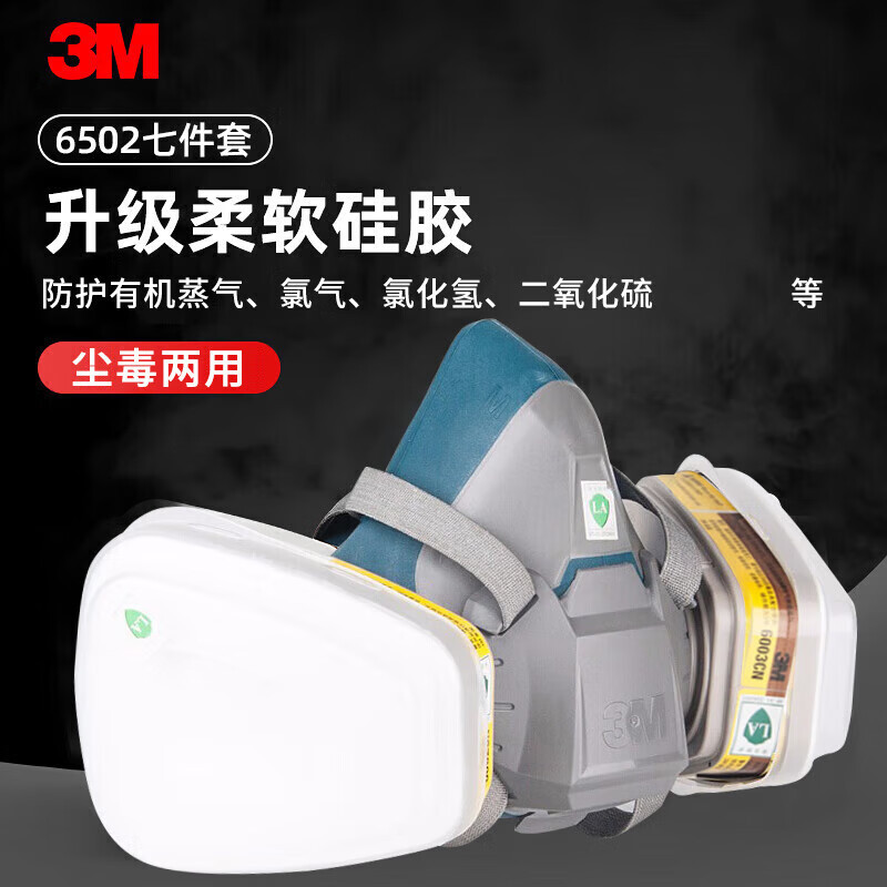 3M6502 가스 마스크 필터 박스 7피스 스프레이 페인트 먼지 화학 가스 호흡기 보호 세트스토어 가기