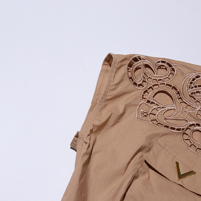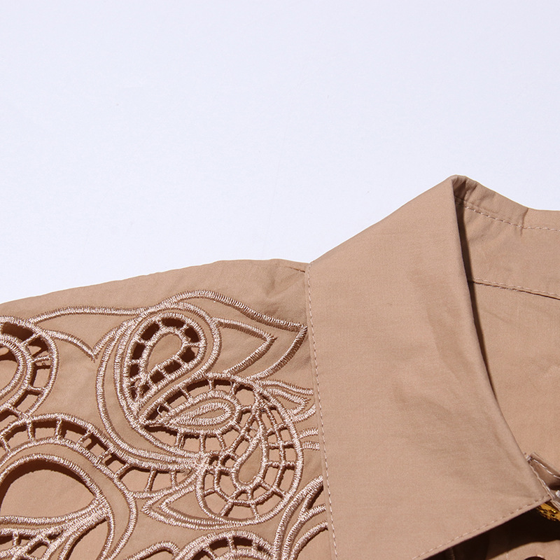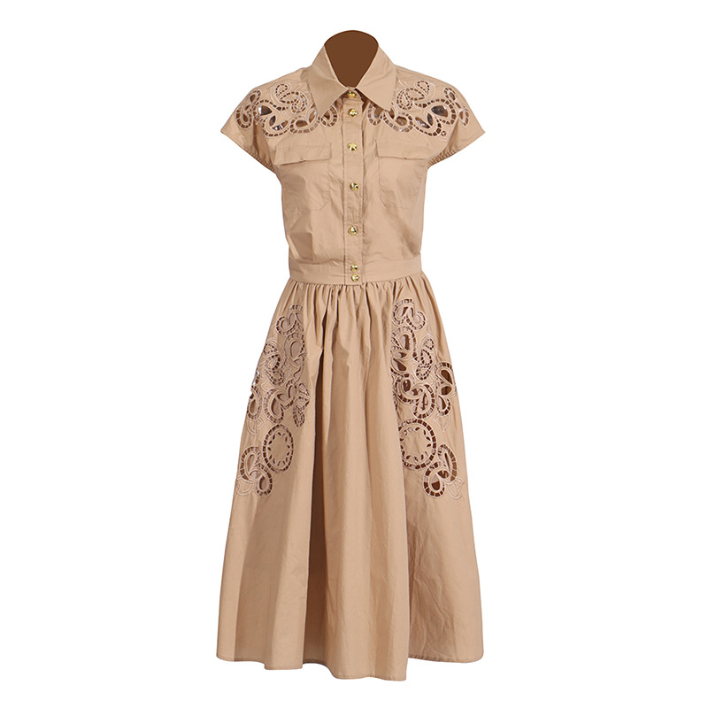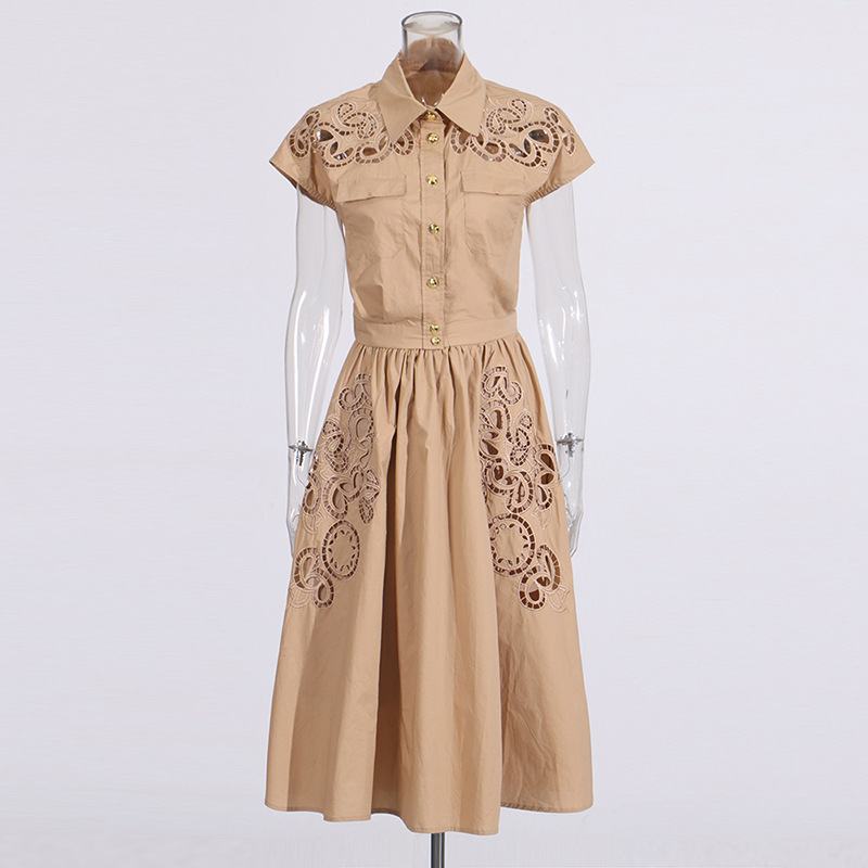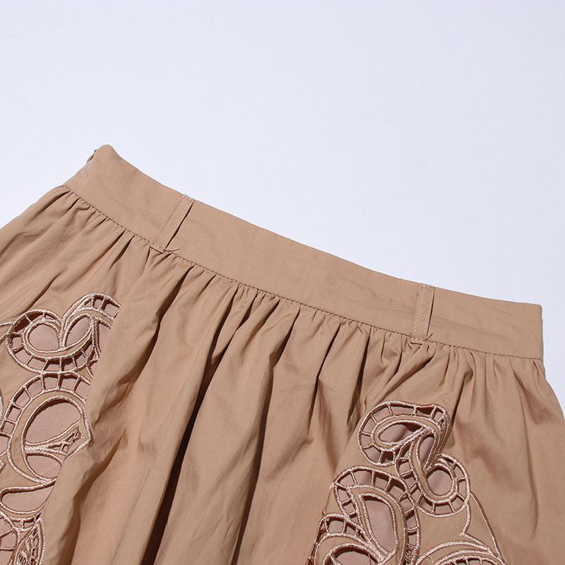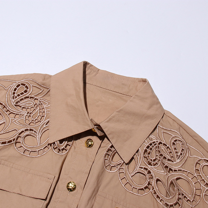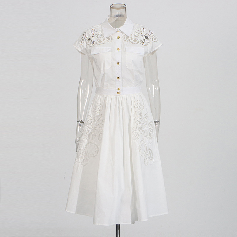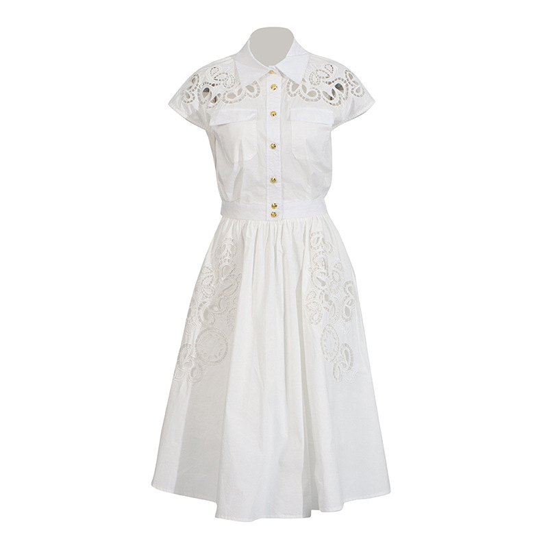 프랑스 레트로 여성 여름 세트 2025 새로운 옷깃 반팔 싱글 브레스트 탑 자수 중공 스커트 여성스토어 가기