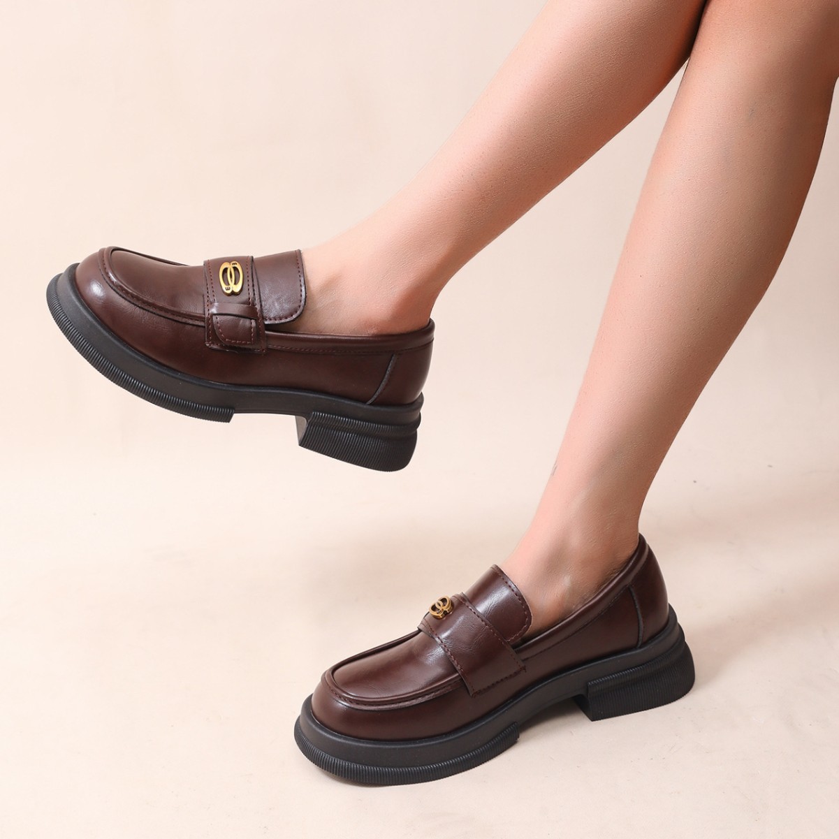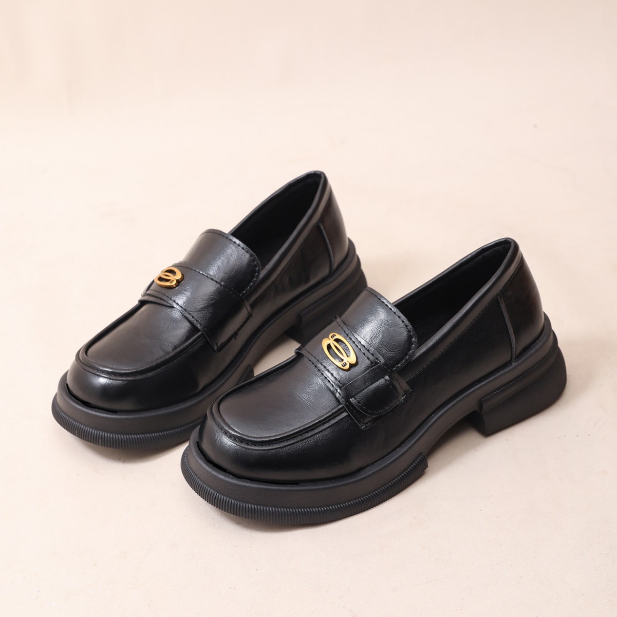 플랫폼 밑창 대형 소형 가죽 신발 봄 신작 영국식 로퍼 슬립온 여성용 라운드 토 신발스토어 가기