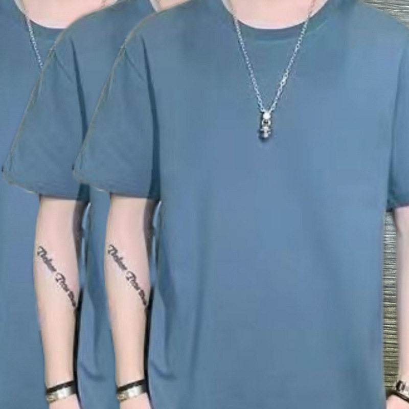 100T 루즈 캐주얼 라운드 넥 남성 티셔츠 컬러 트렌디 여름 반팔 남성 의류 바닥 1/2 크로스 보더 공장 직접 헤어 스타일