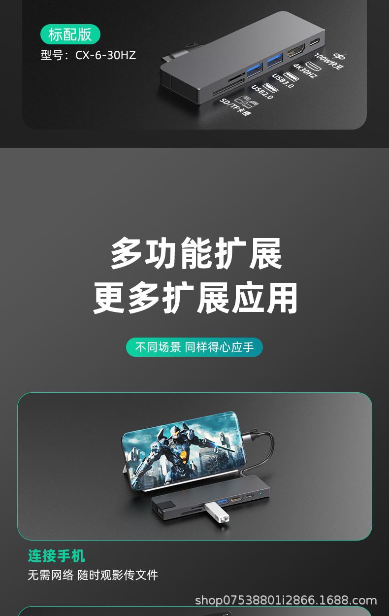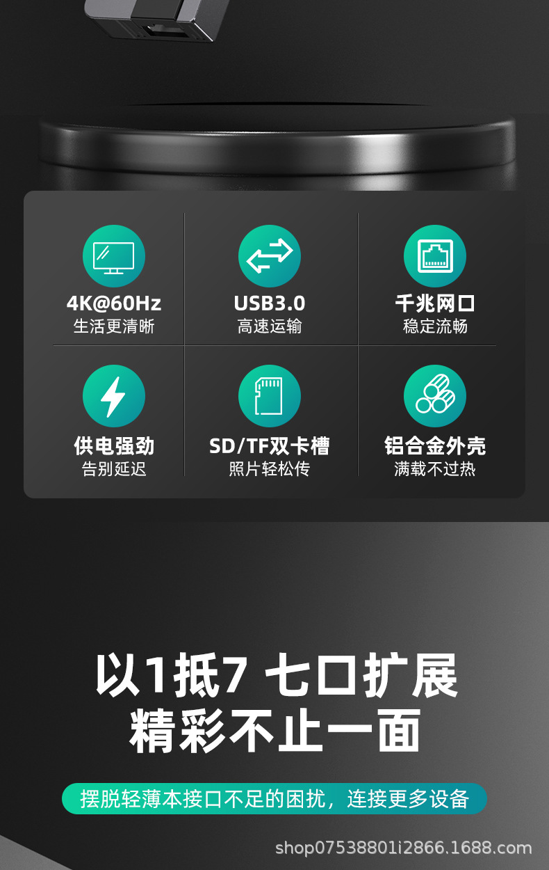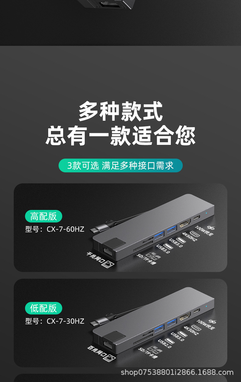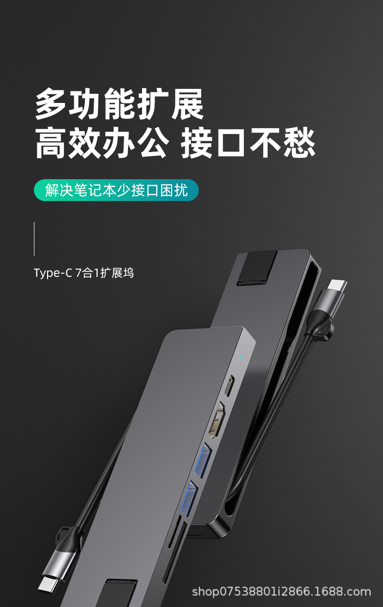 Typec7-in-one 국경 간 도킹 스테이션 컴퓨터 허브 macbook 노트북 PD100 고속 충전 알루미늄 합금스토어 가기