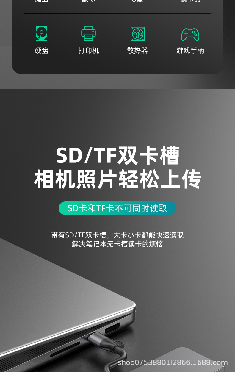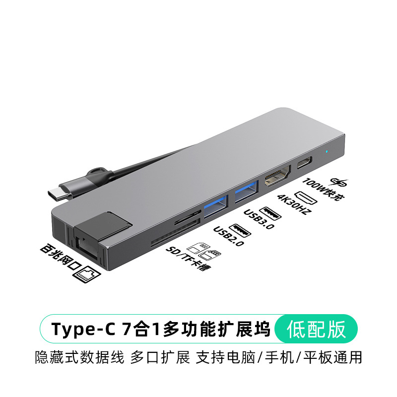 Typec7-in-one 국경 간 도킹 스테이션 컴퓨터 허브 macbook 노트북 PD100 고속 충전 알루미늄 합금