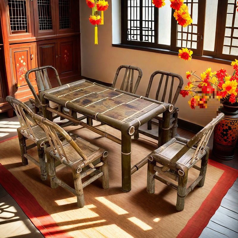 중국식 구식 테이블, 대나무 테이블과 의자, 야외 테이블, 차 테이블, 식탁, 커피 테이블, 사무실 냄비 대나무 테이블 풀 세트
