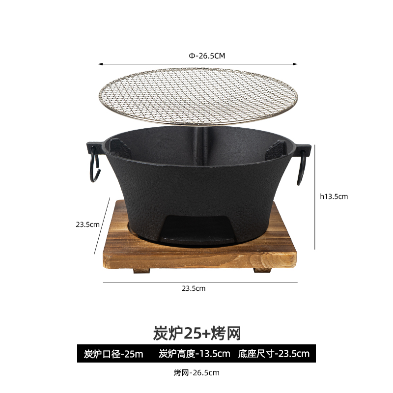 • 대형 25cm 스토브 + 나무 베이스 + 원형 그릴 그리드 26.5cm + Xingsen 베이킹 팬 30cm