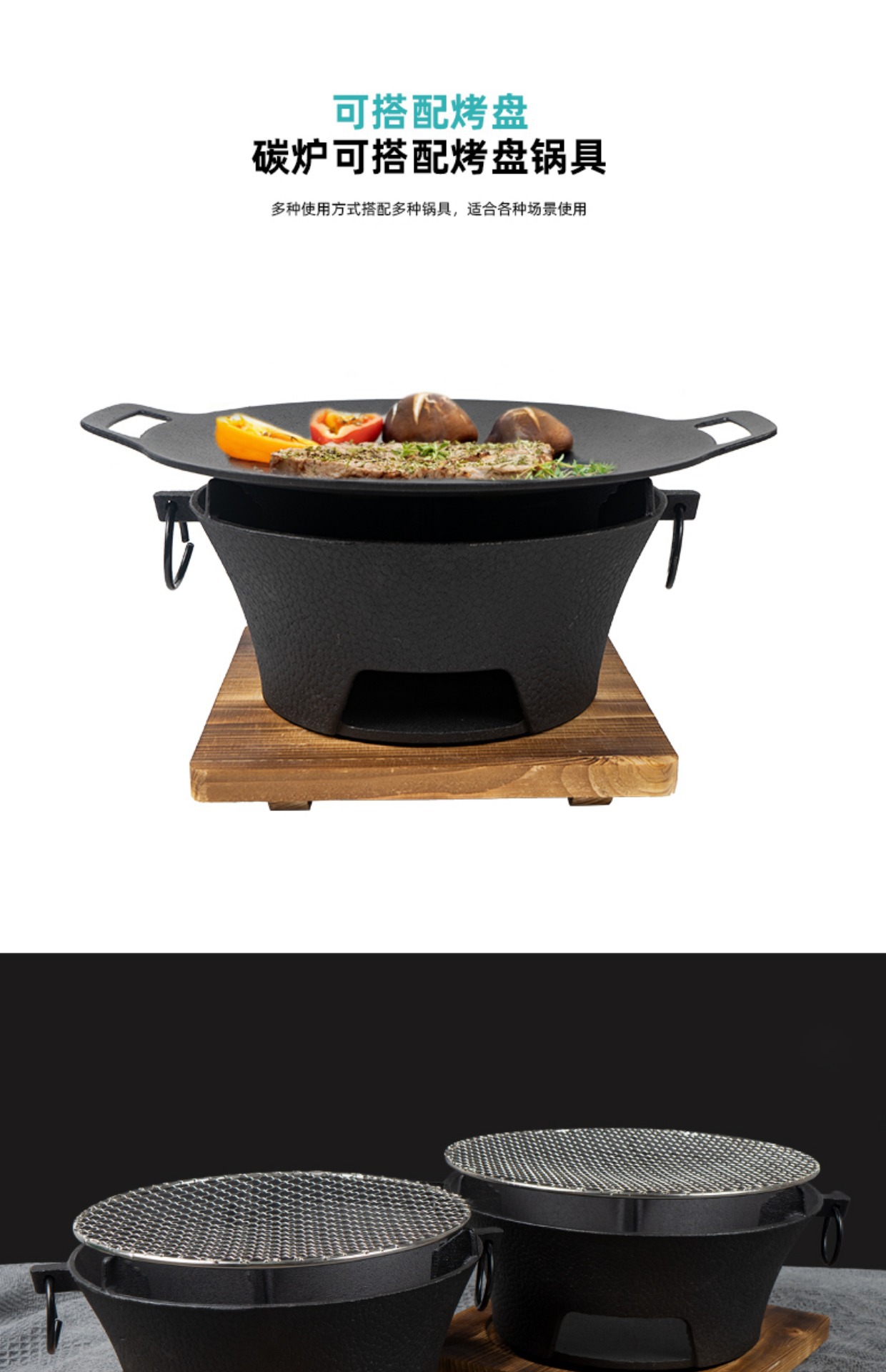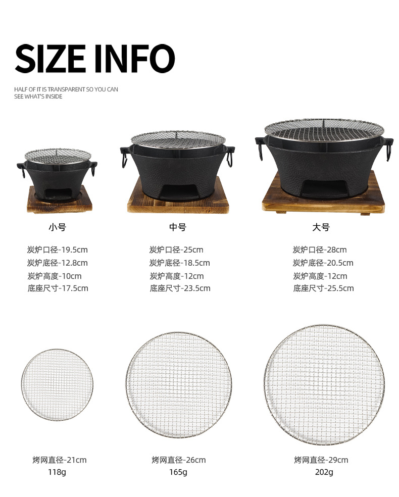 • 19.5cm 스토브 + 나무 베이스 + 원형 그릴 그리드 21cm + Xingsen 베이킹 팬 30cm