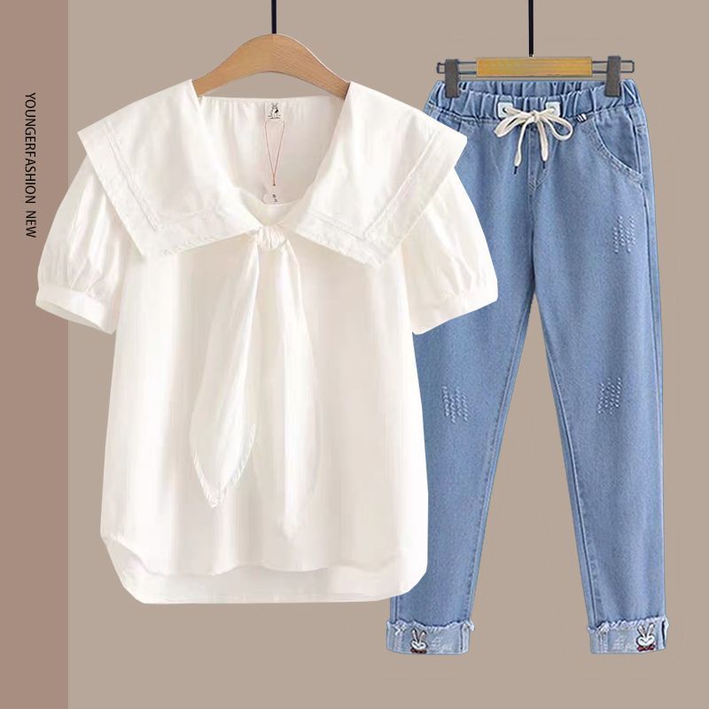 V5H 여름 여성 반팔 양복 중학생 소녀 반팔 티셔츠 정장 대학 스타일스토어 가기