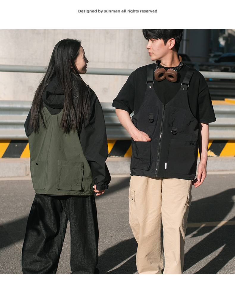 홍콩 스타일 타이드 브랜드 툴링 이중 목적 숄더 백 멀티 포켓 대용량 가변 배낭 맞춤형 마운틴 캠핑 조끼 가방