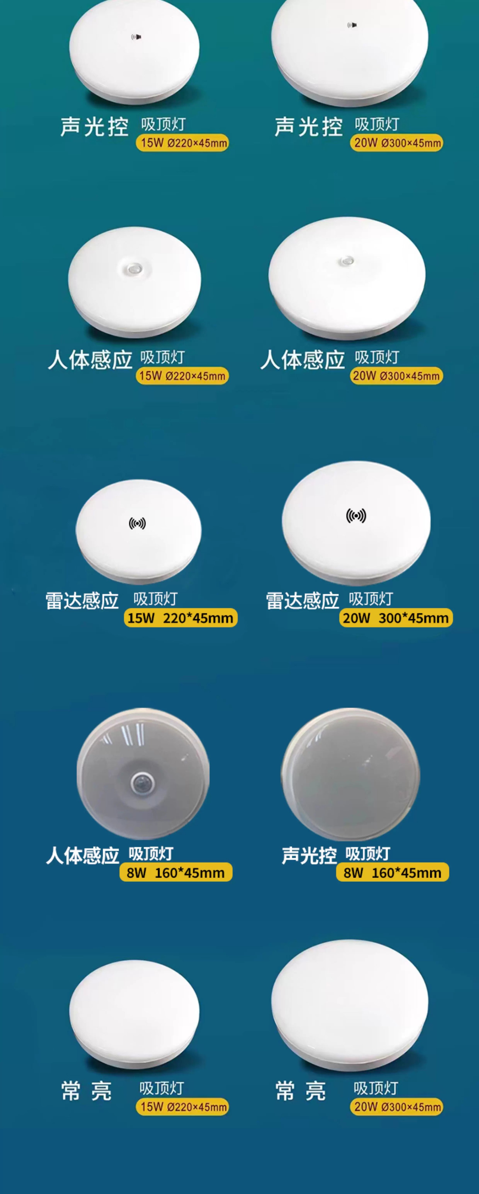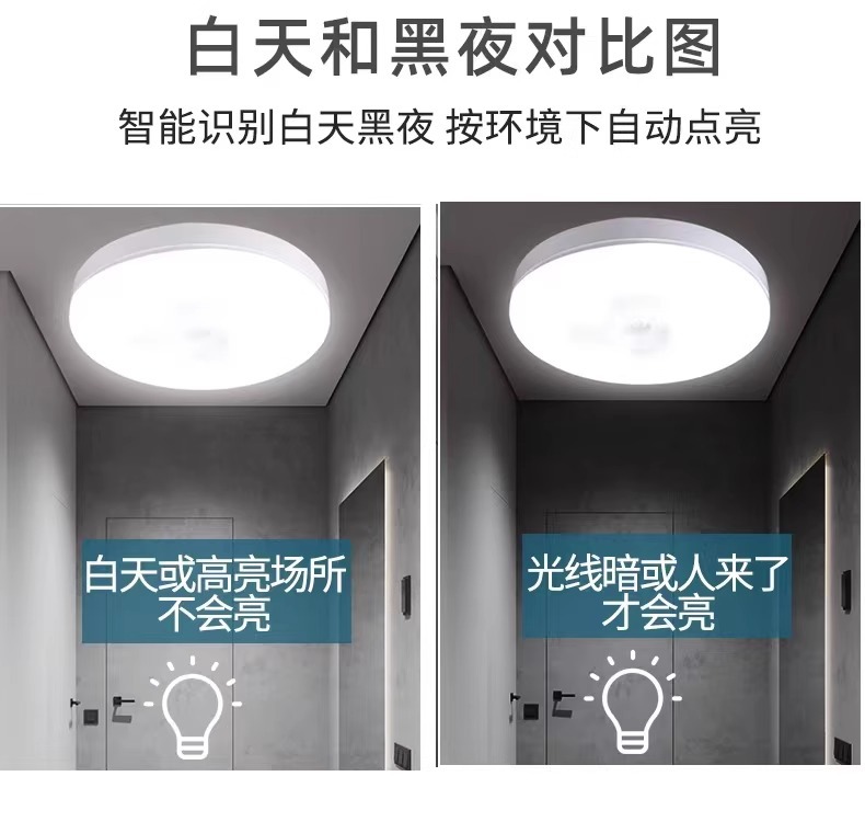 지능형 LED 유도 천장 조명 복도 복도 통로 계단 소리 및 조명 제어 자동 레이더 인체 유도 램프