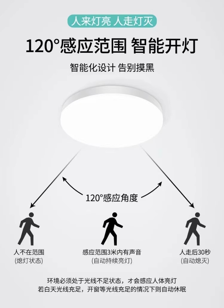 • Pinjian 조명 15w 인체 센서 천장 조명 직경 22cm