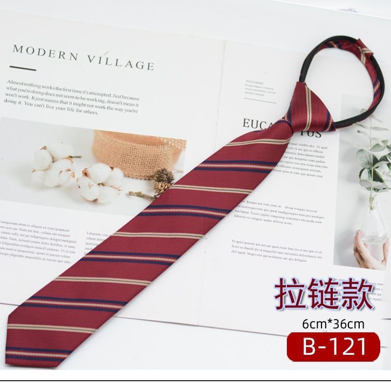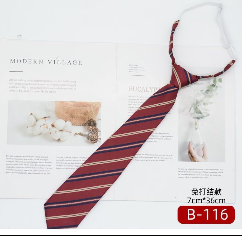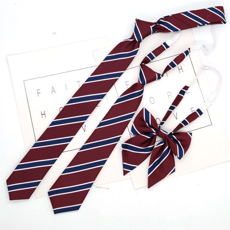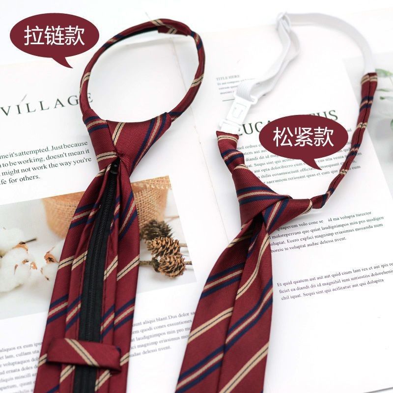 JK 넥타이 여성 한국식 일본식 학생복 대학 스타일 버건디 스트라이프 7CM 핸드메이드 지퍼 매듭 없음스토어 가기
