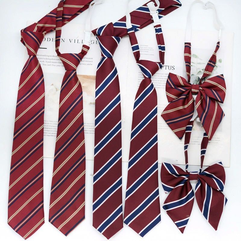 JK 넥타이 여성 한국식 일본식 학생복 대학 스타일 버건디 스트라이프 7CM 핸드메이드 지퍼 매듭 없음