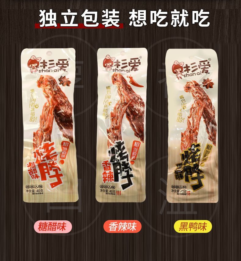 Shanai 구운 목 40g/봉지 전체 공기 건조 매리 네드 바로 먹을 수있는 캐주얼 스낵 비 오리 목 슈퍼마켓 도매 손으로 찢은 닭 목