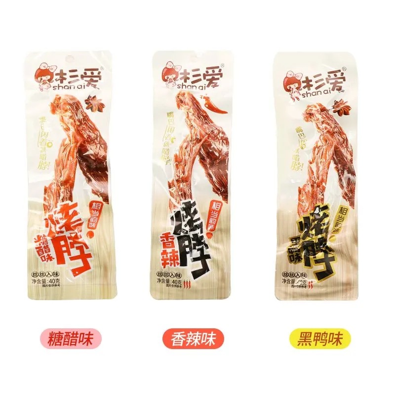 Shanai 구운 목 40g/봉지 전체 공기 건조 매리 네드 바로 먹을 수있는 캐주얼 스낵 비 오리 목 슈퍼마켓 도매 손으로 찢은 닭 목스토어 가기