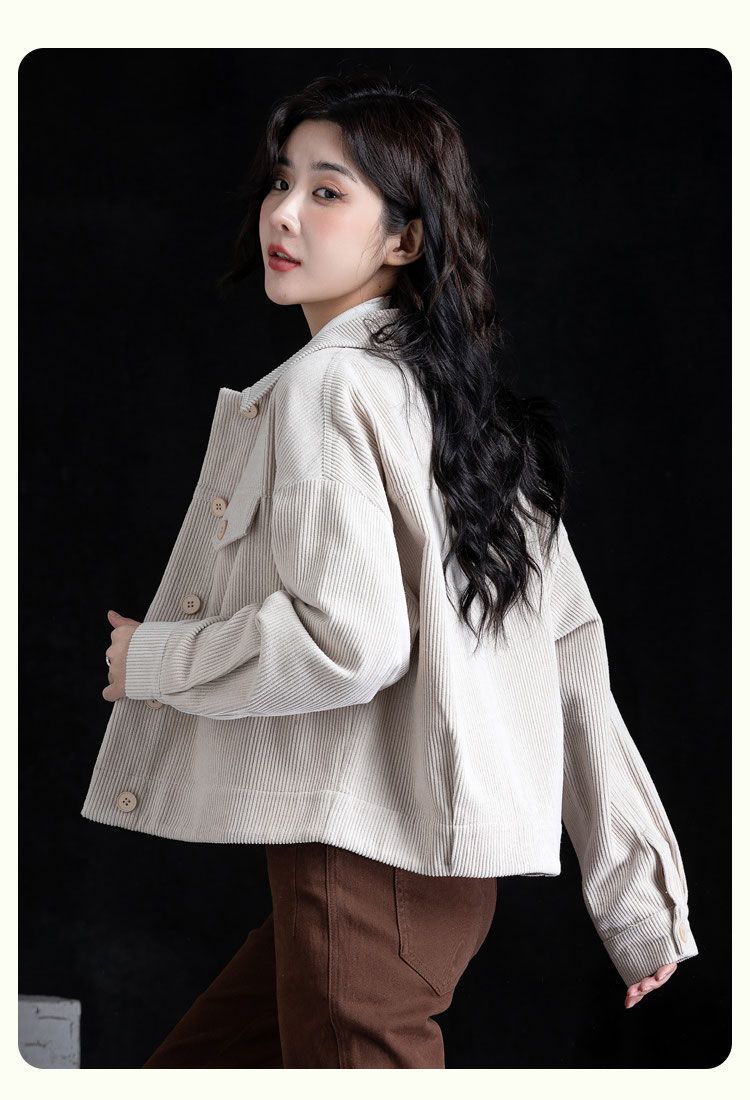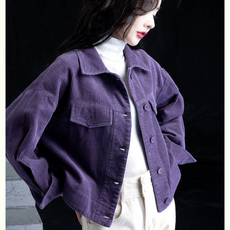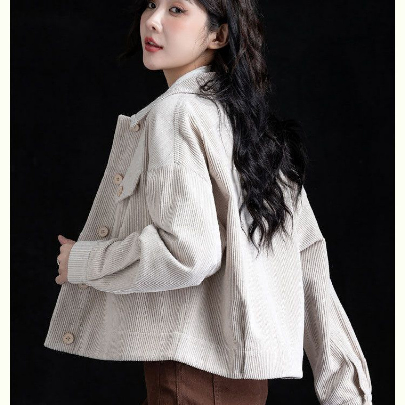 코듀로이 자켓 여성 신작 2025 봄 여성 캐주얼 다목적 자켓 짧은 코듀로이 겉옷 솔리드 컬러 탑