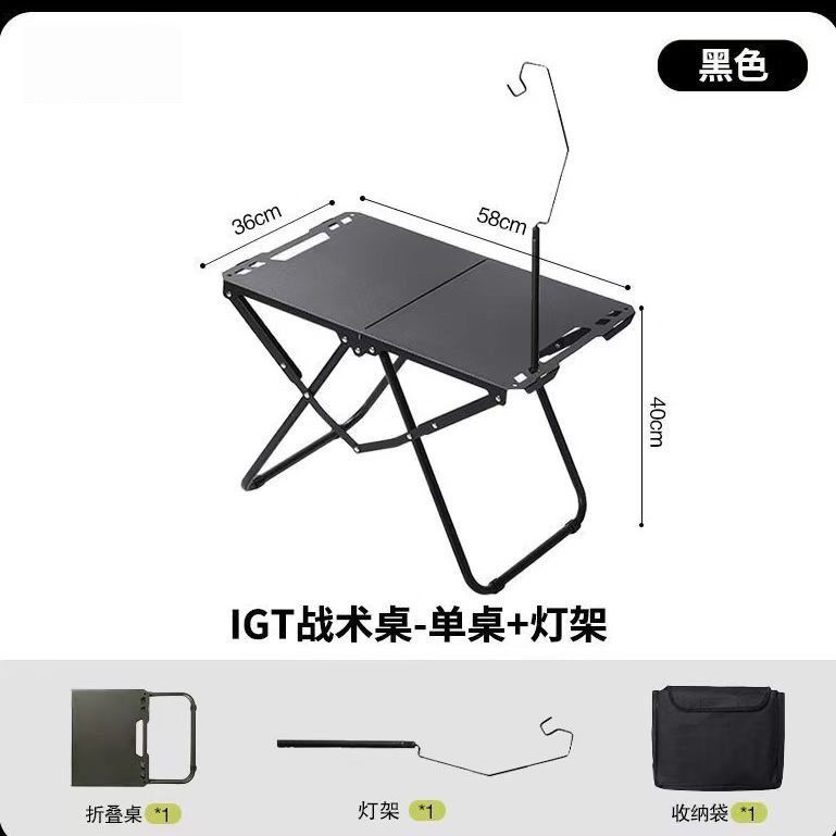 • 매트 블랙 전술 테이블 + 램프 스탠드 + [무료 보관 가방]