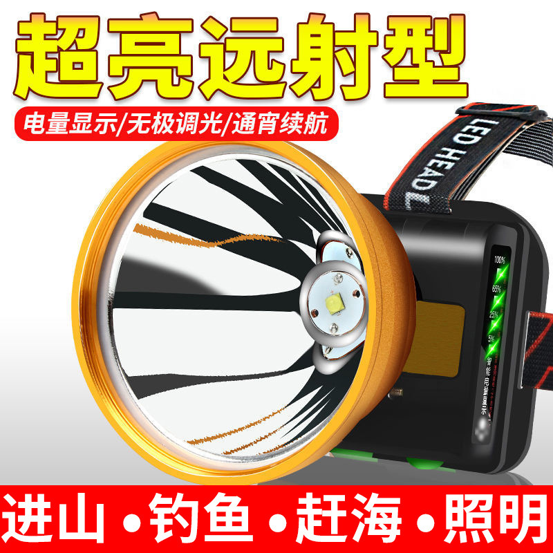 강력한 헤드라이트, 매우 긴 배터리 수명, 광산 충전, 매우 밝은 헤드 장착형 손전등, 감지 낚시, 특수 장거리 야간 낚시