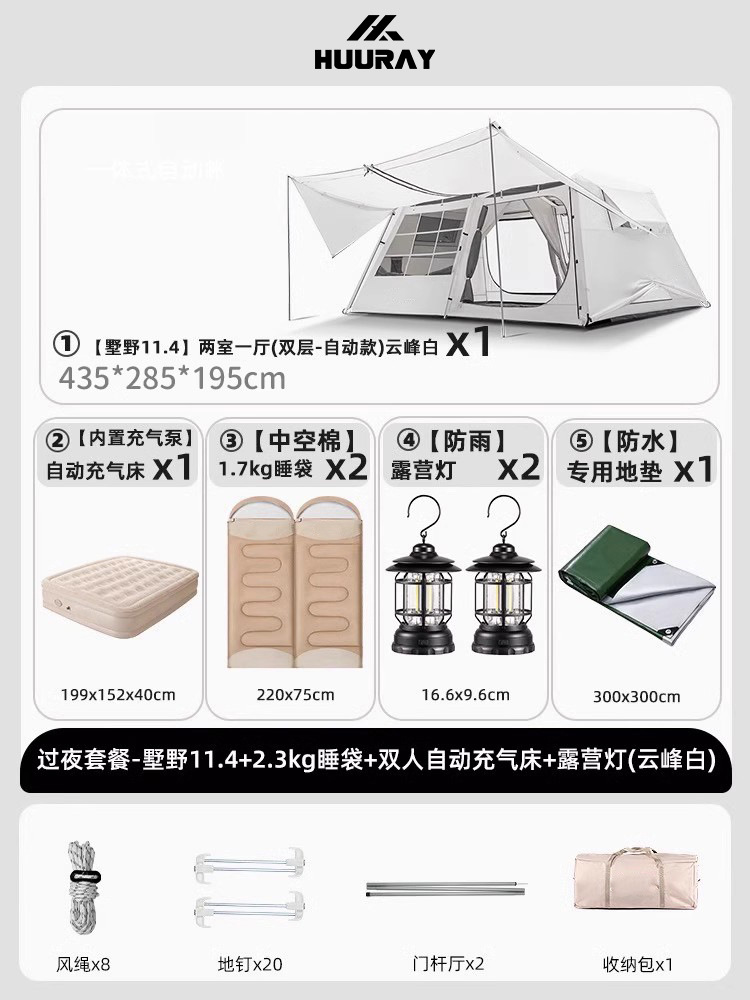 • [숙박 패키지] 슈예 11.4+1.7kg 침낭+더블 자동 공기주입식 침대+캠핑등(윤펑 화이트)