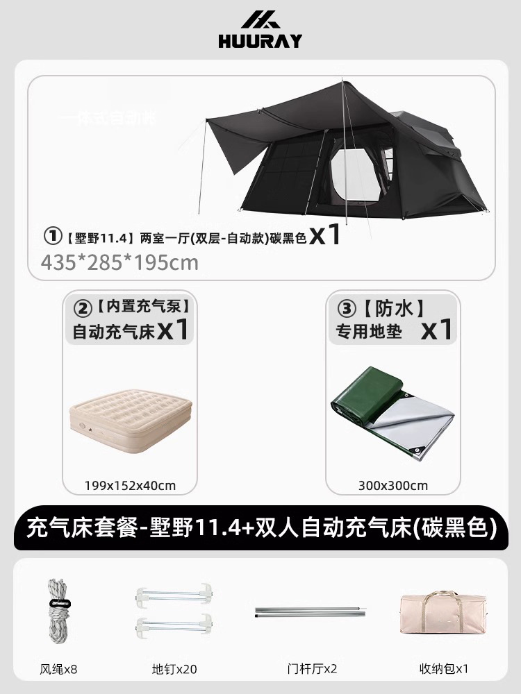 • [숙박 패키지] 슈예 11.4+1.7kg 침낭+더블 자동 공기주입식 침대+캠핑등(카본블랙)