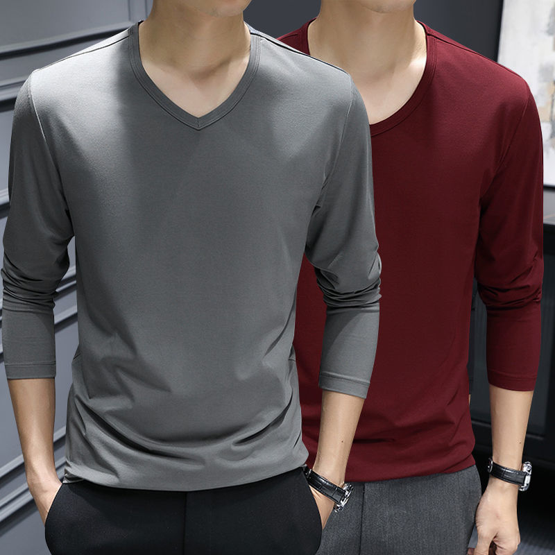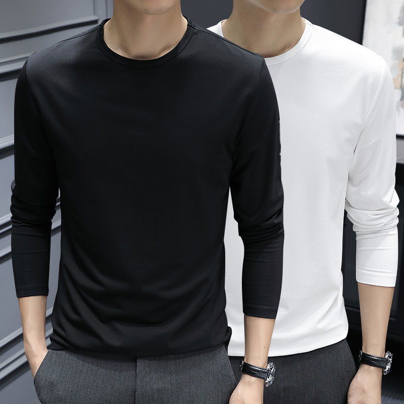 남성용 슬림핏 긴팔 컬러 티셔츠 2팩, 라운드넥 이너웨어, 젊은 커플을 위한 활용도 높은 티셔츠, 탑스토어 가기