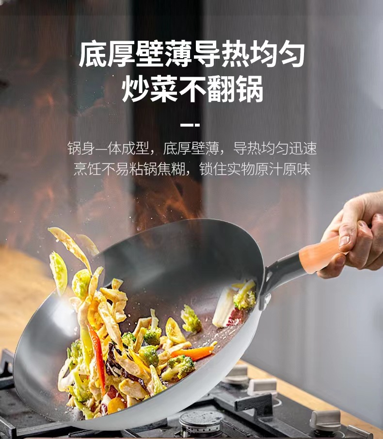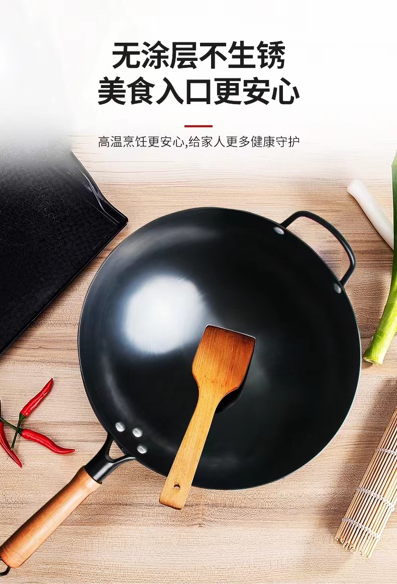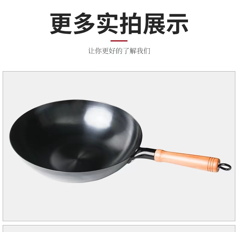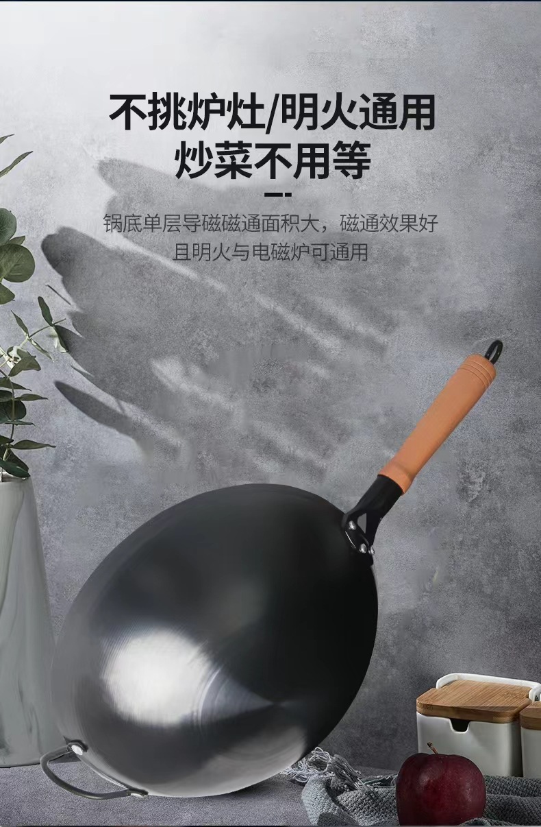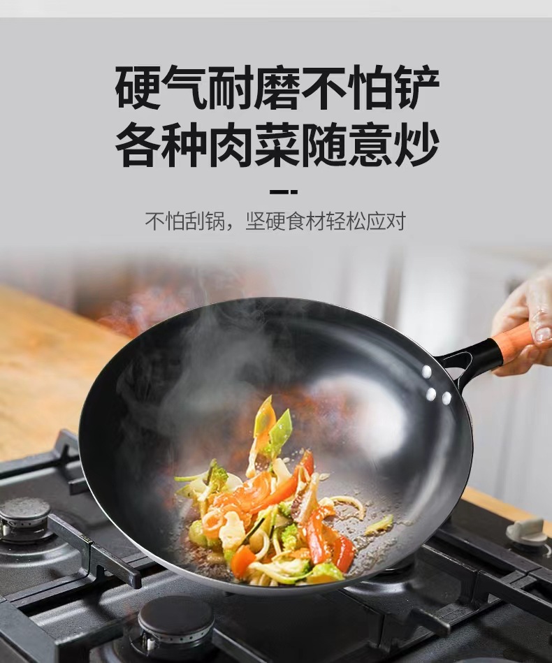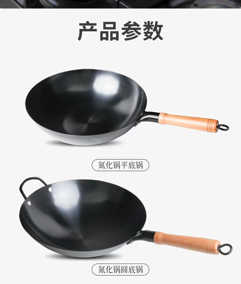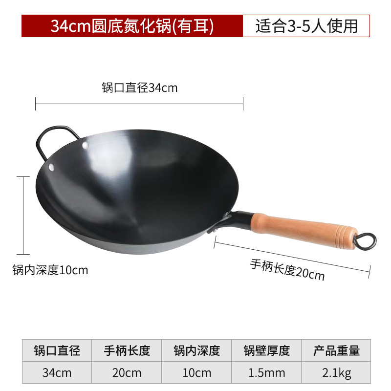 수제 둥근 바닥 냄비, 고온 질화 웍, 코팅되지 않은 붙지 않는 냄비, 가정용 튀김용 경량 철 냄비, 냄비 개봉스토어 가기