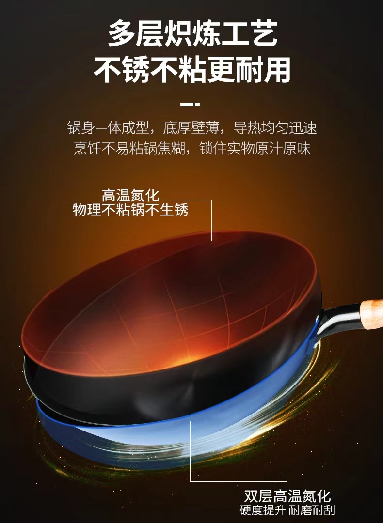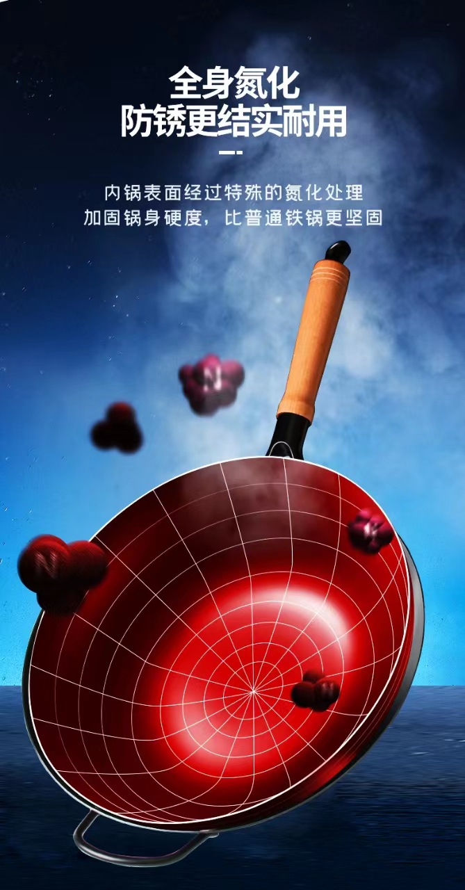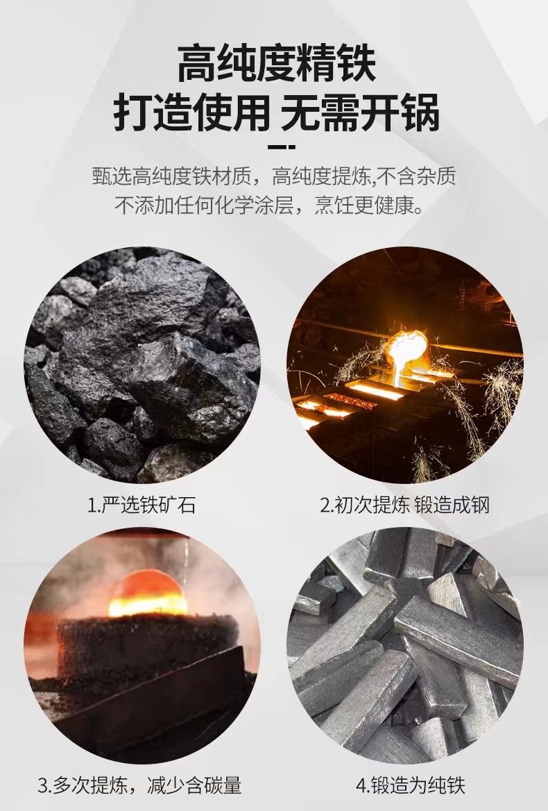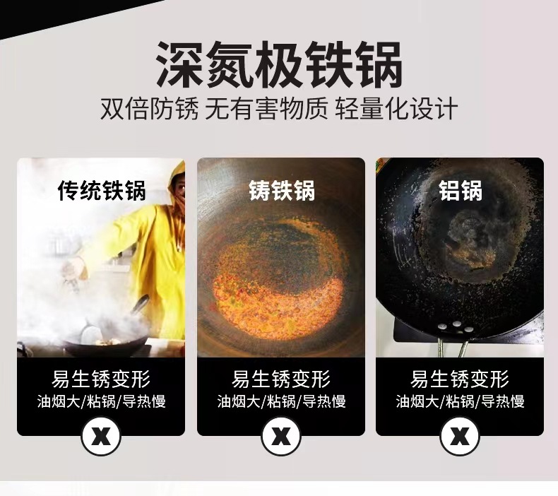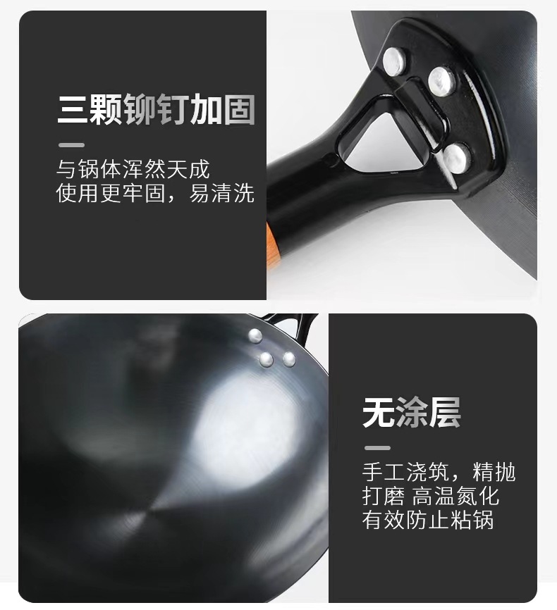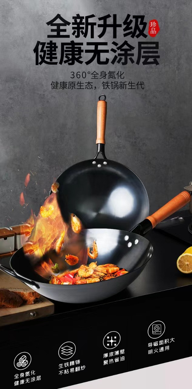 수제 둥근 바닥 냄비, 고온 질화 웍, 코팅되지 않은 붙지 않는 냄비, 가정용 튀김용 경량 철 냄비, 냄비 개봉스토어 가기
