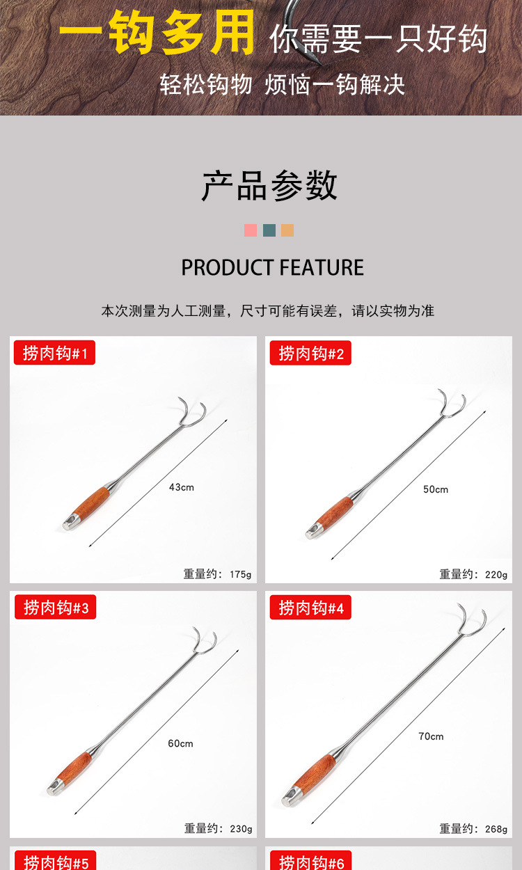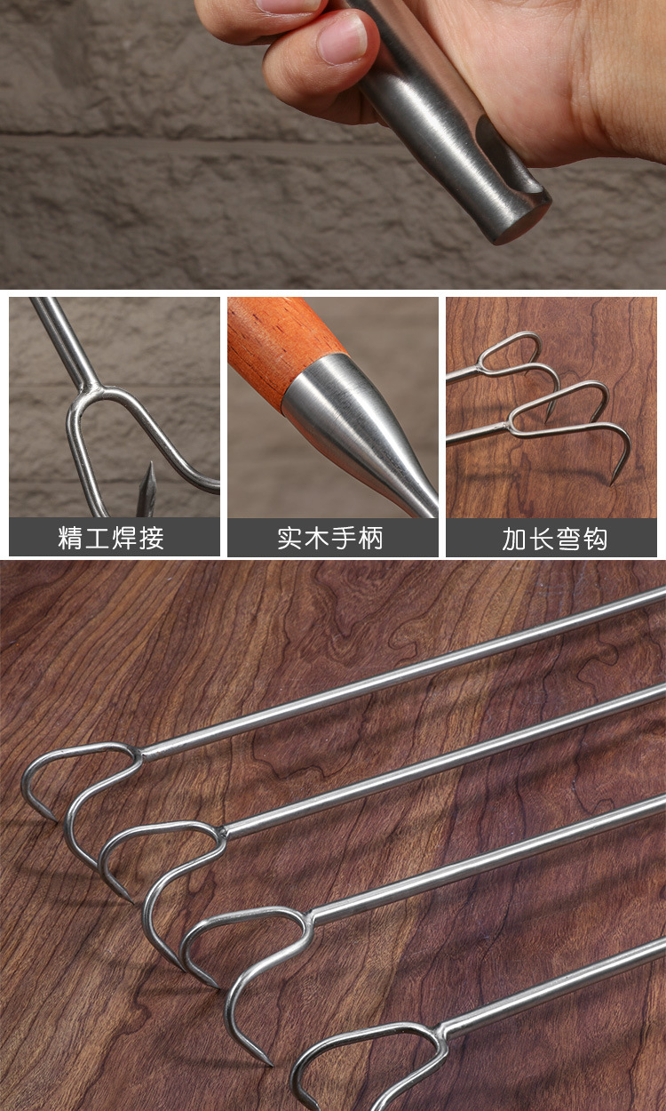 스테인리스 두꺼운 화상방지 긴 손잡이 고기걸이, 찐고기걸이, 상업용 조리식품 수프걸이, 야외용 픽업 및 버섯 따기