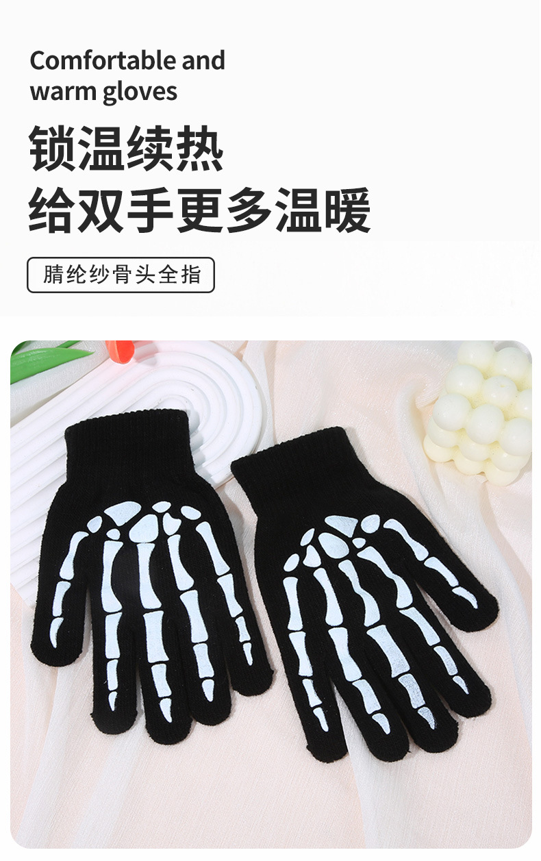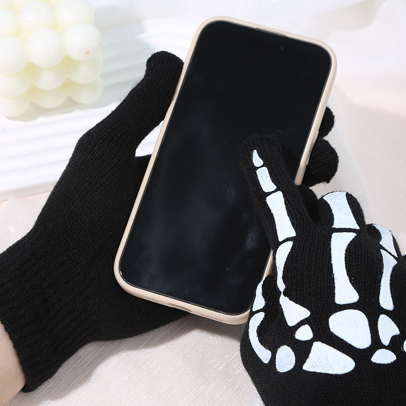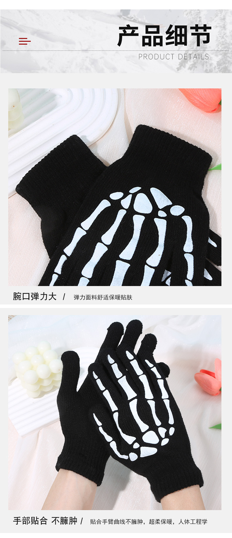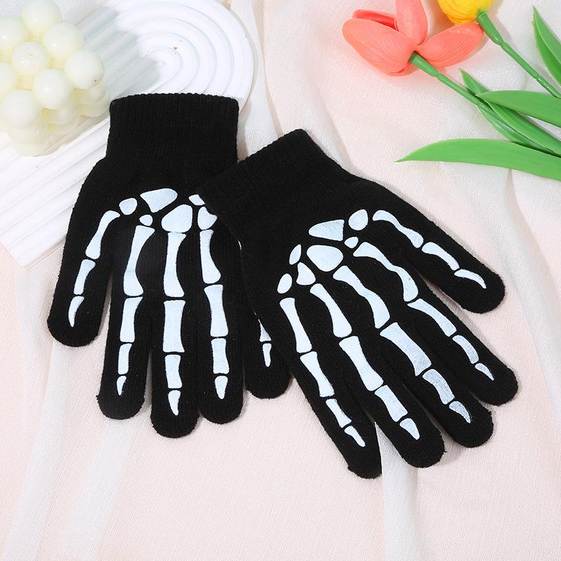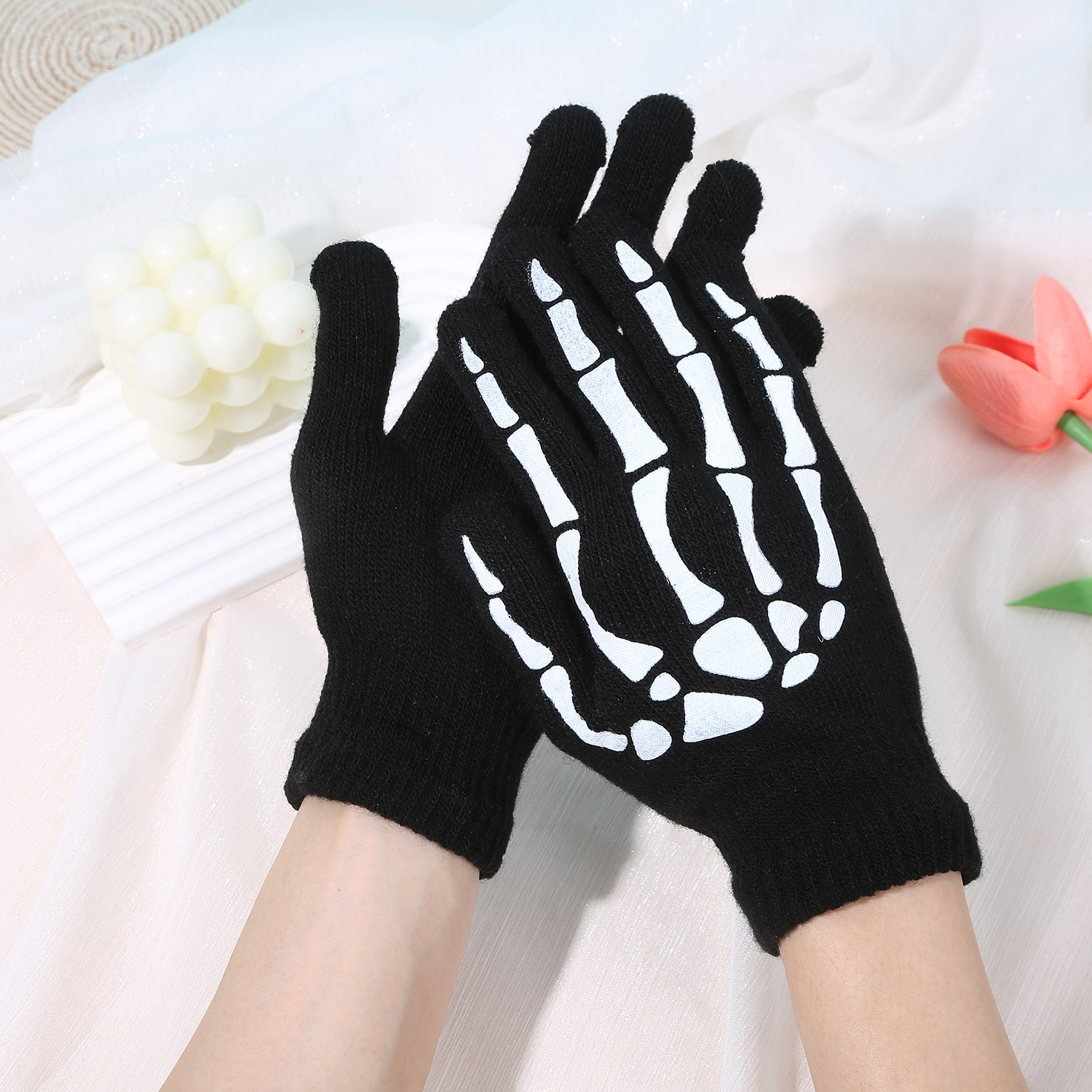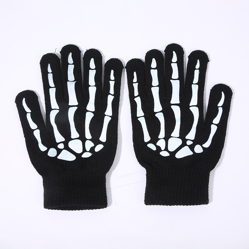 공장 직접 판매 국경 할로윈 유령 축제 해골 니트 장갑 빛나는 빛나는 야외 사이클링 니트 장갑