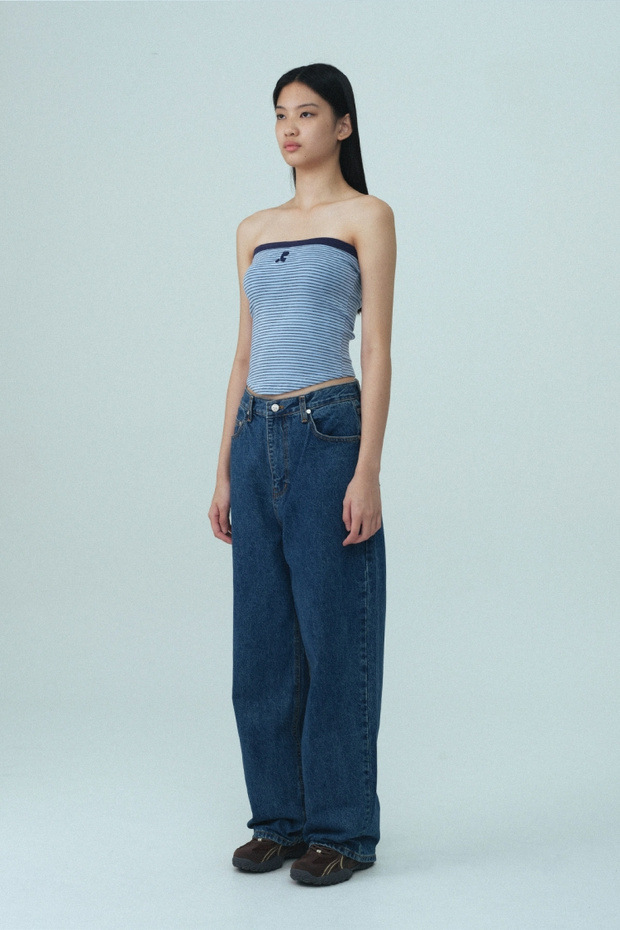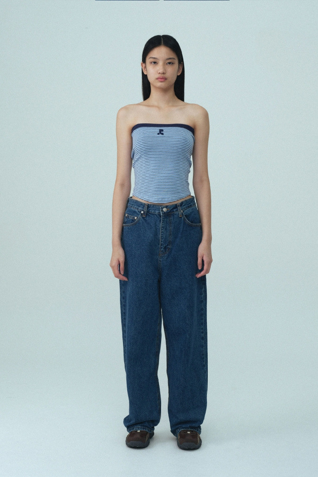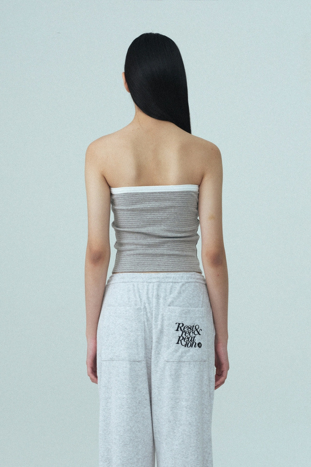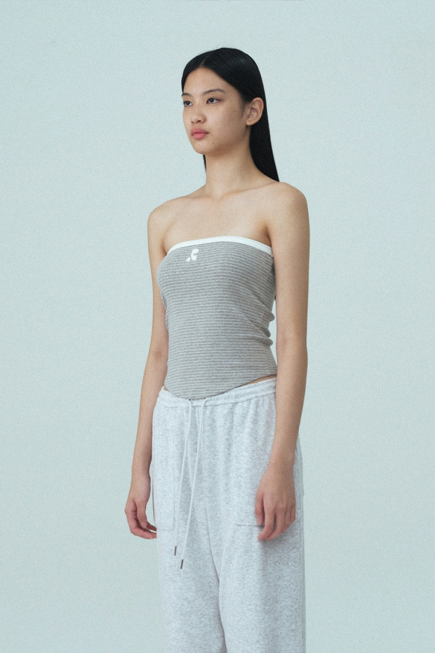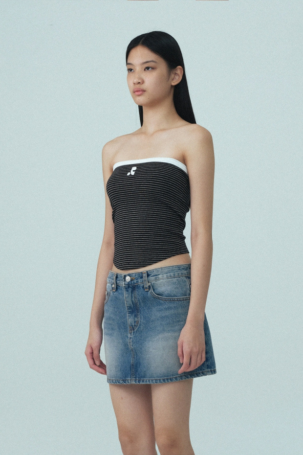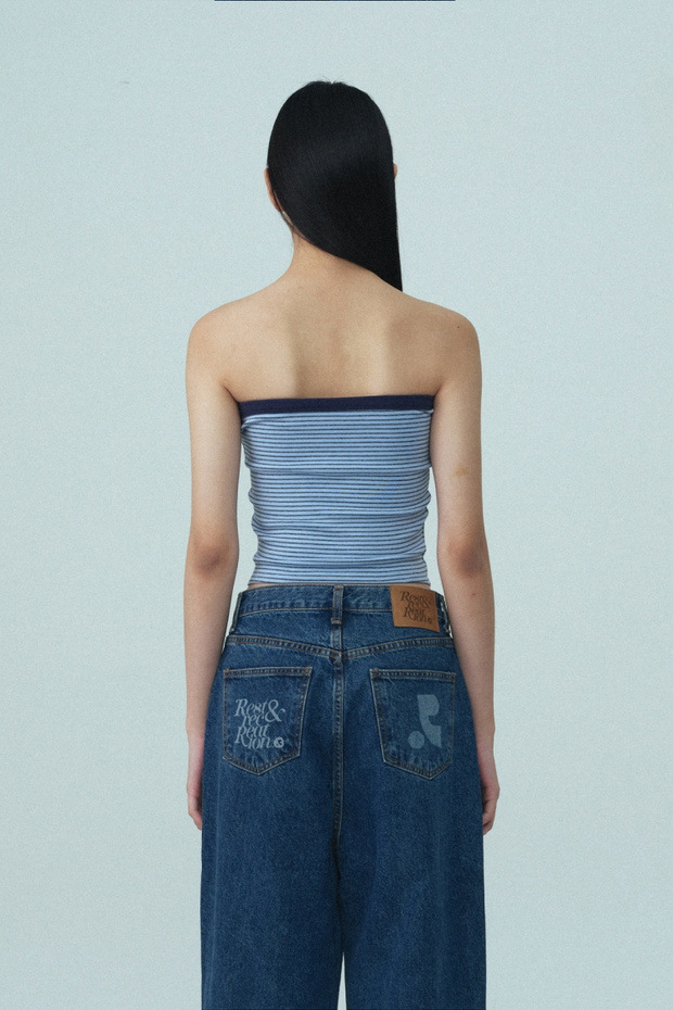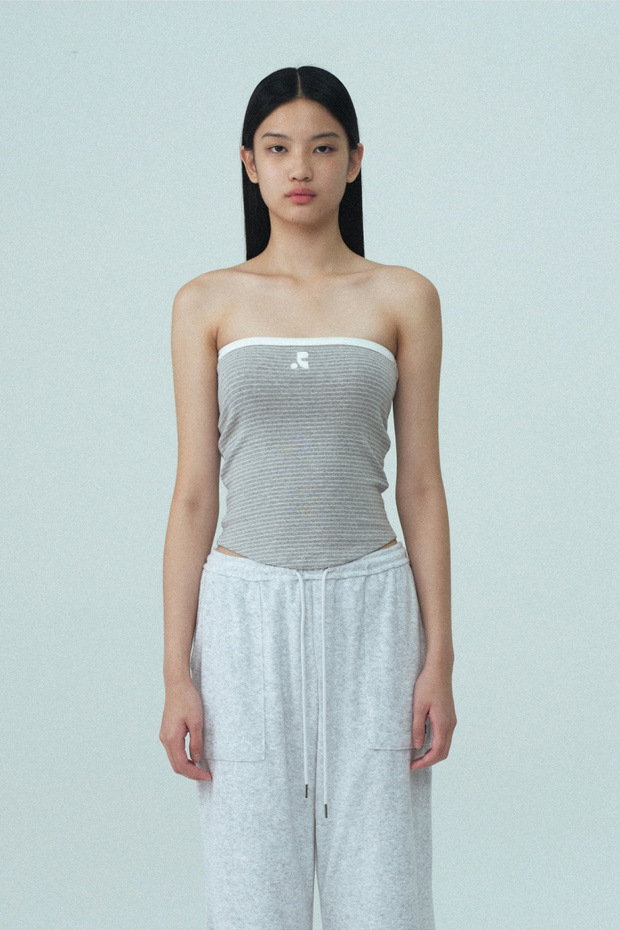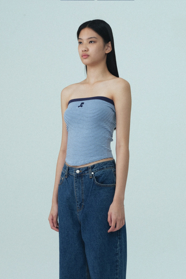 2025 여름 레스트 RR 클로티팀 한국 디자이너 브랜드 RR 자수 슬림 스트라이프 튜브탑 여성용