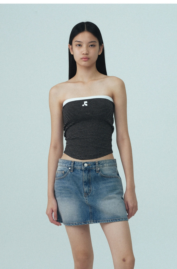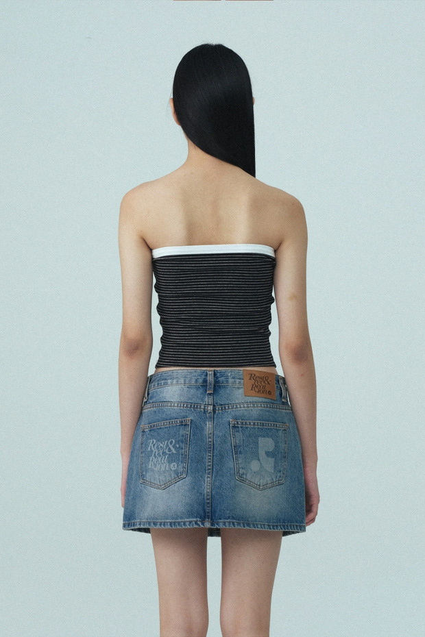 2025 여름 레스트 RR 클로티팀 한국 디자이너 브랜드 RR 자수 슬림 스트라이프 튜브탑 여성용스토어 가기