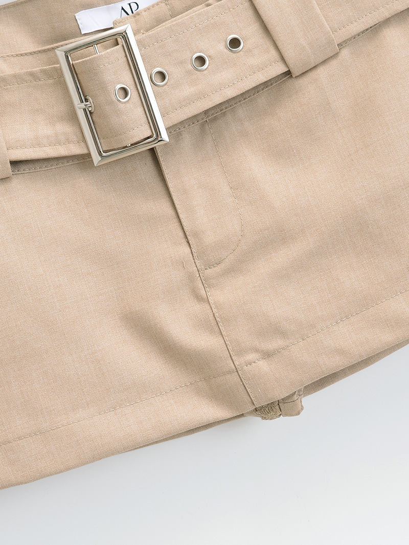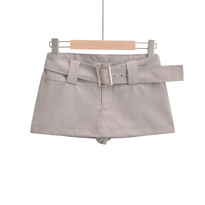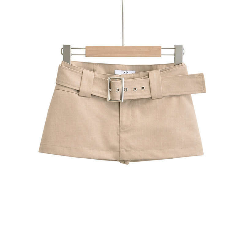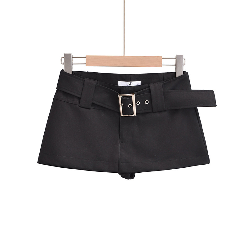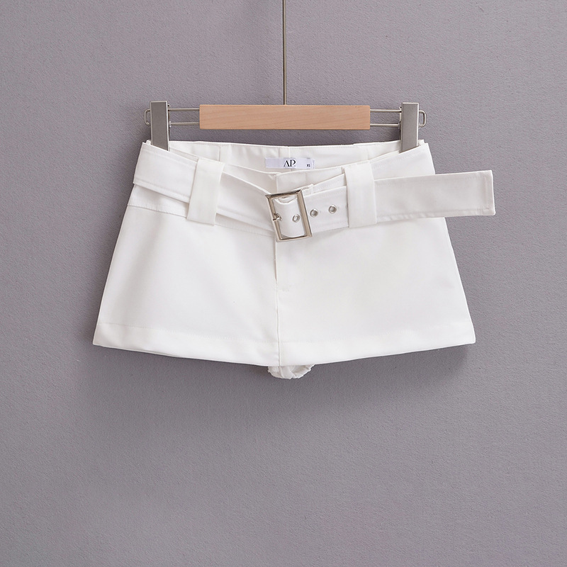 여름 신상품 벨트가 달린 여성용 아메리칸 스위트 앤 스파이시 로우 웨이스트 힙 커버 워크 스커트 노출 방지 A라인 초짧은 미니 스커트