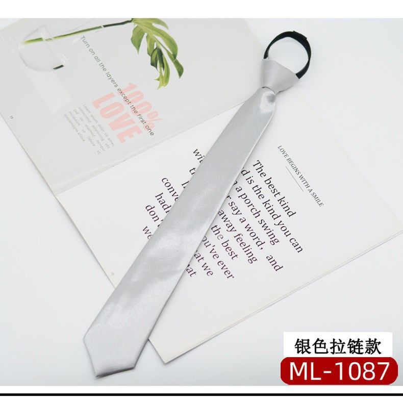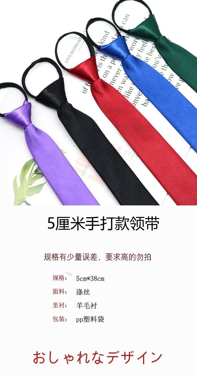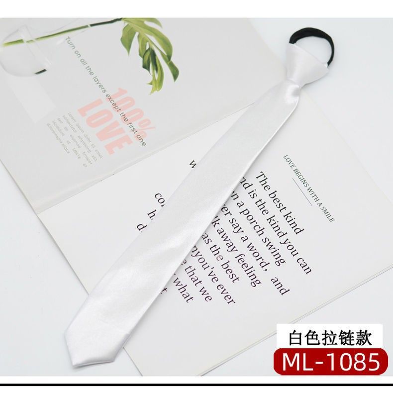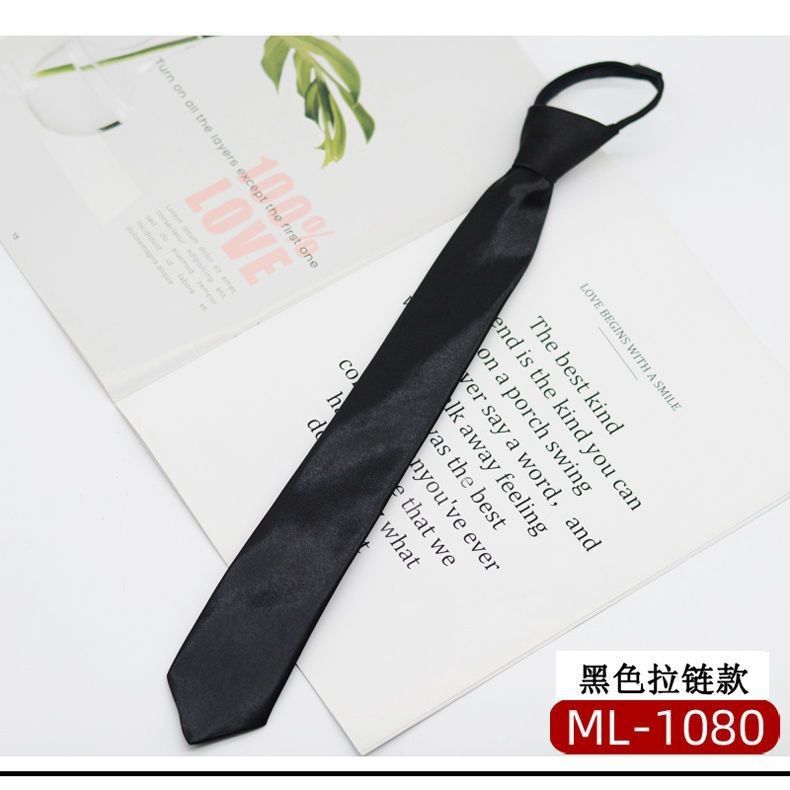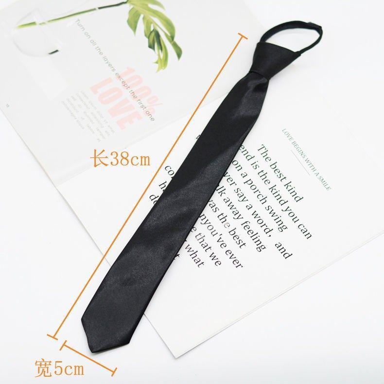 지퍼 타이 여성 JK 한국어 버전 일본식 5CM 매듭없는 단색 검정색 광택 대학 스타일 캐주얼 좁은 버전 유행
