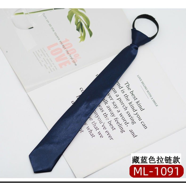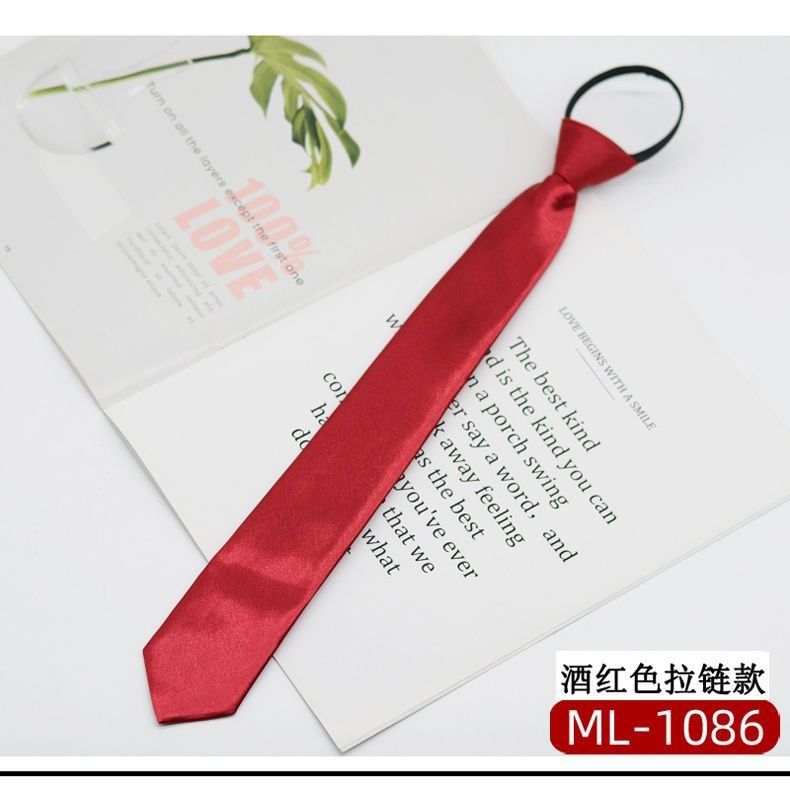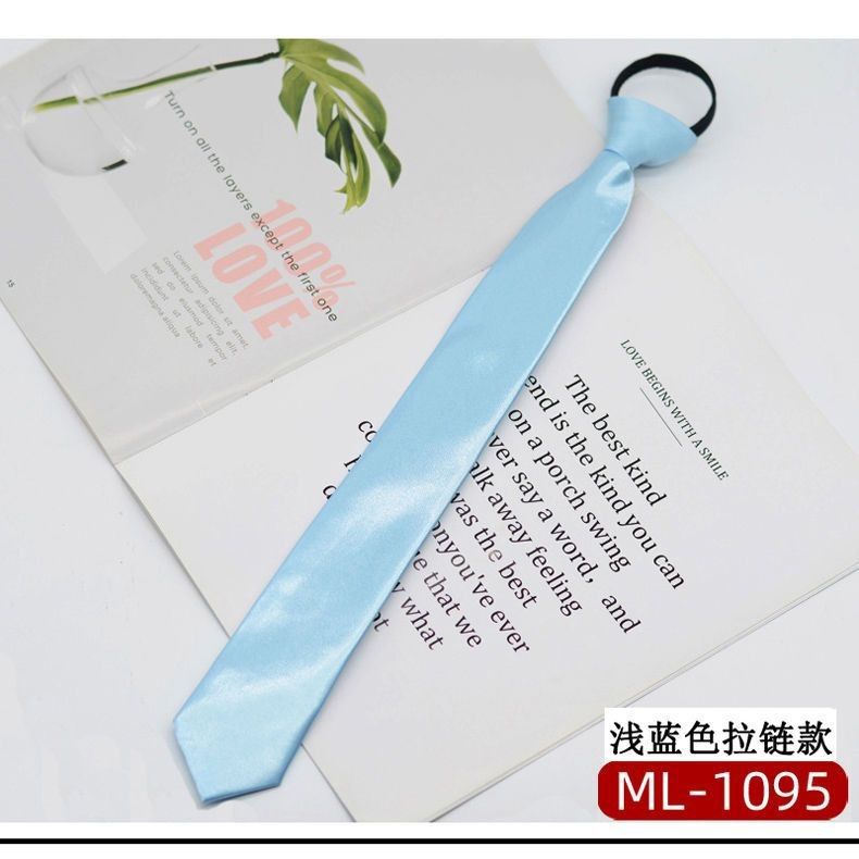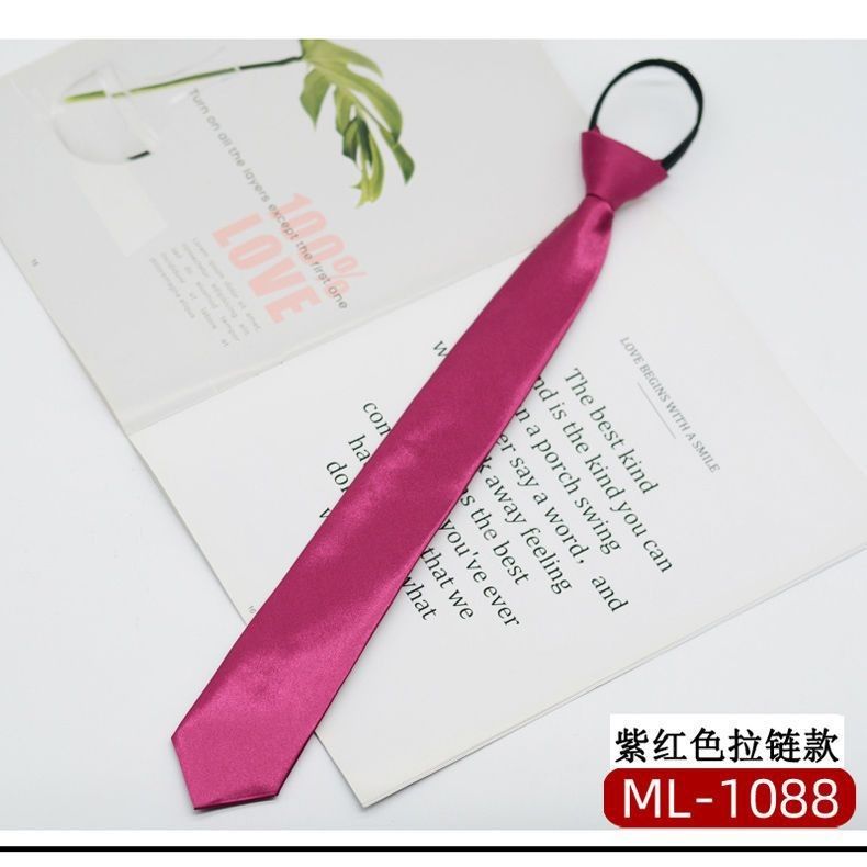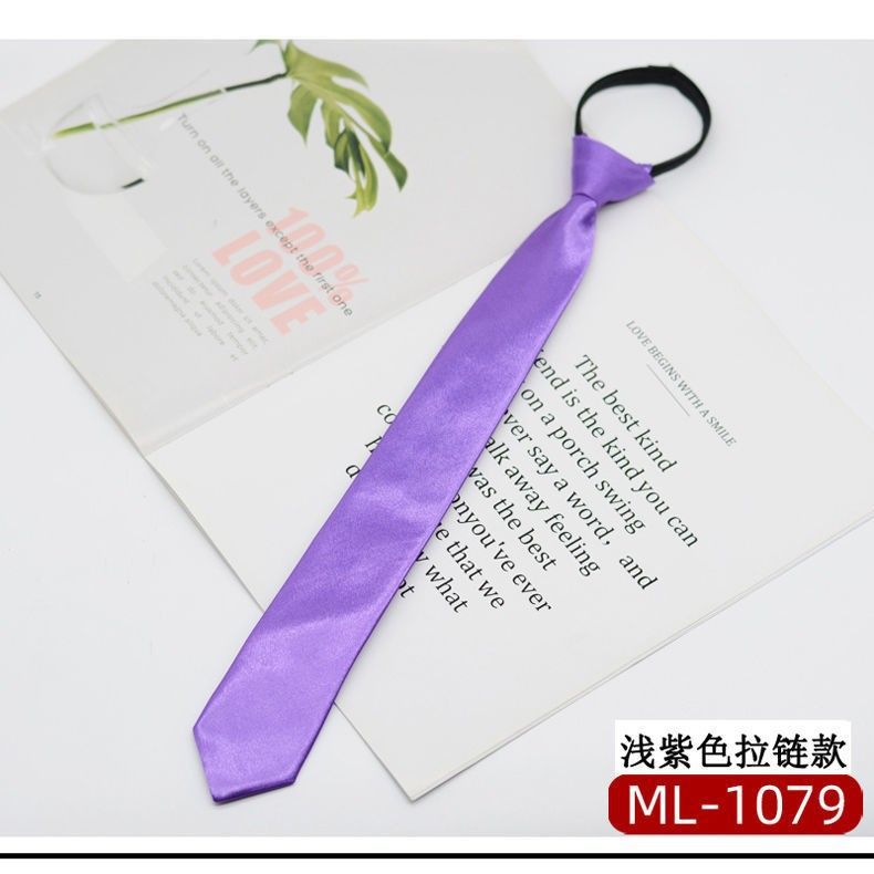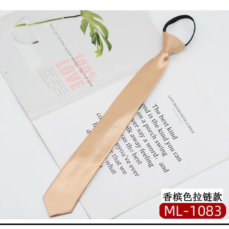 지퍼 타이 여성 JK 한국어 버전 일본식 5CM 매듭없는 단색 검정색 광택 대학 스타일 캐주얼 좁은 버전 유행