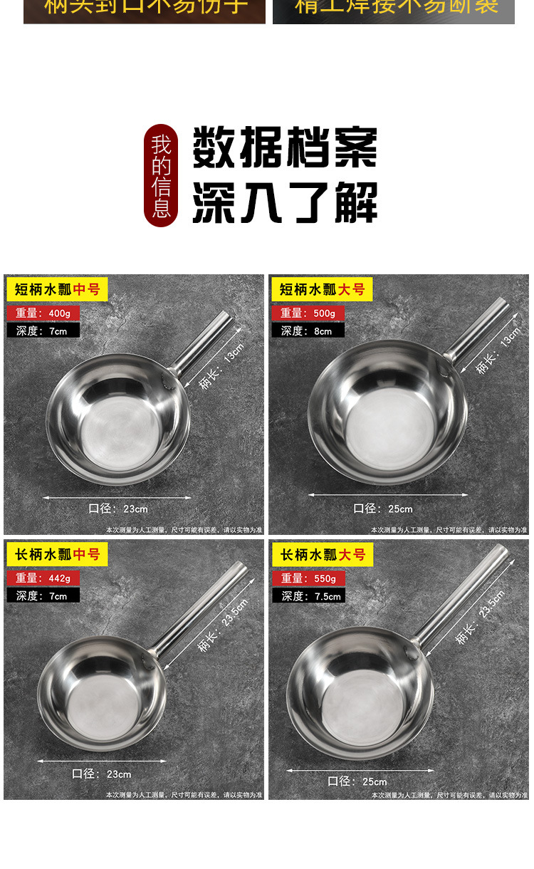 스테인레스 스틸 주방 매점 대형 철제 스푼, 긴 손잡이가 있는 가정용 물 국자, 짧은 손잡이가 있는 두꺼운 물 국자, 상업용 국자스토어 가기