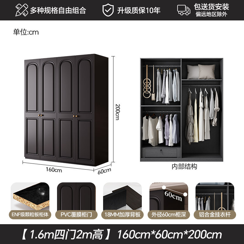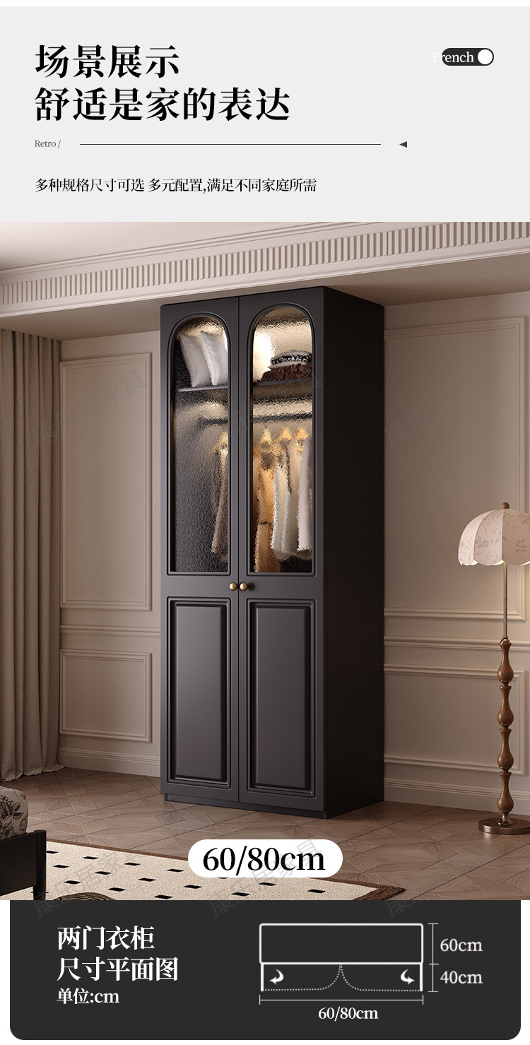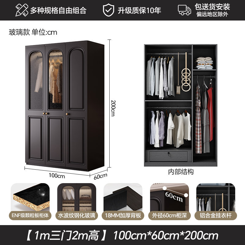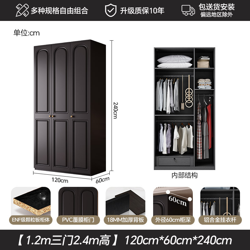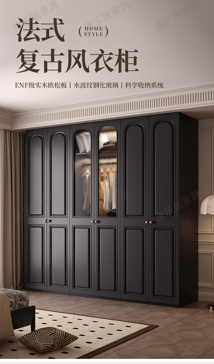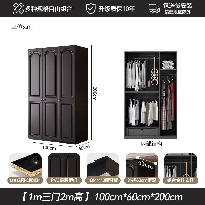 프랑스 복고풍 스타일의 옷장 유럽 소나무 판재 검은색 캐비닛 홈 침실 임대 작은 아파트 경제적인 옷장스토어 가기