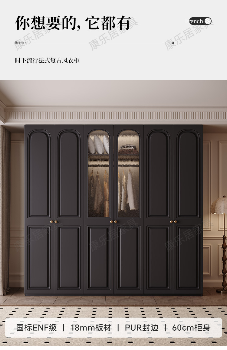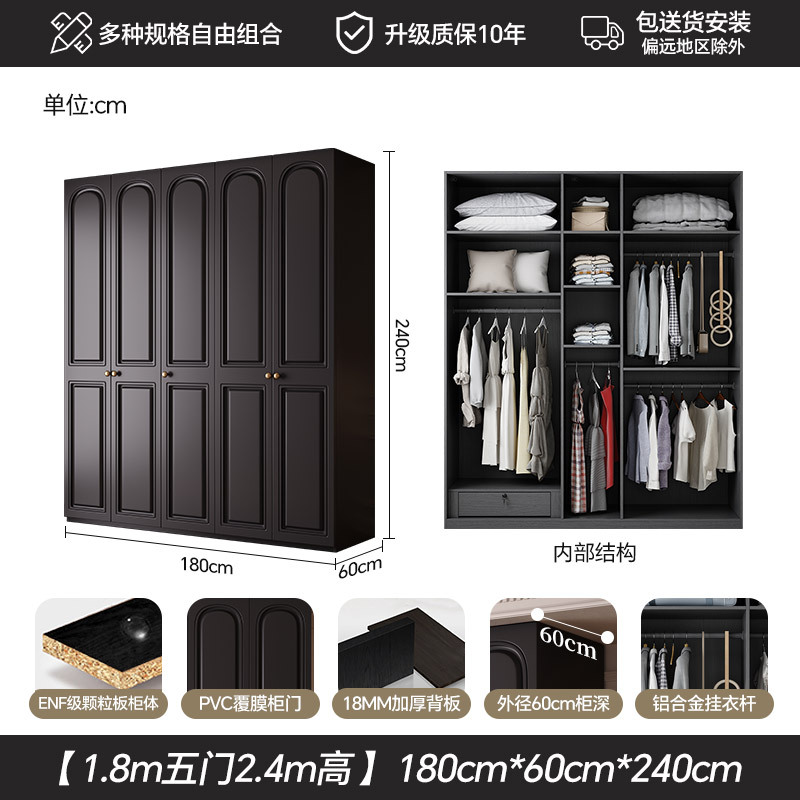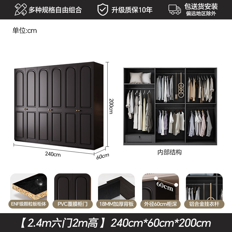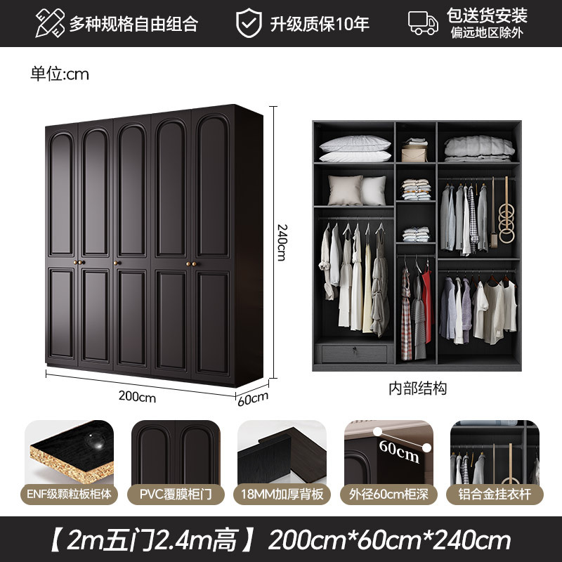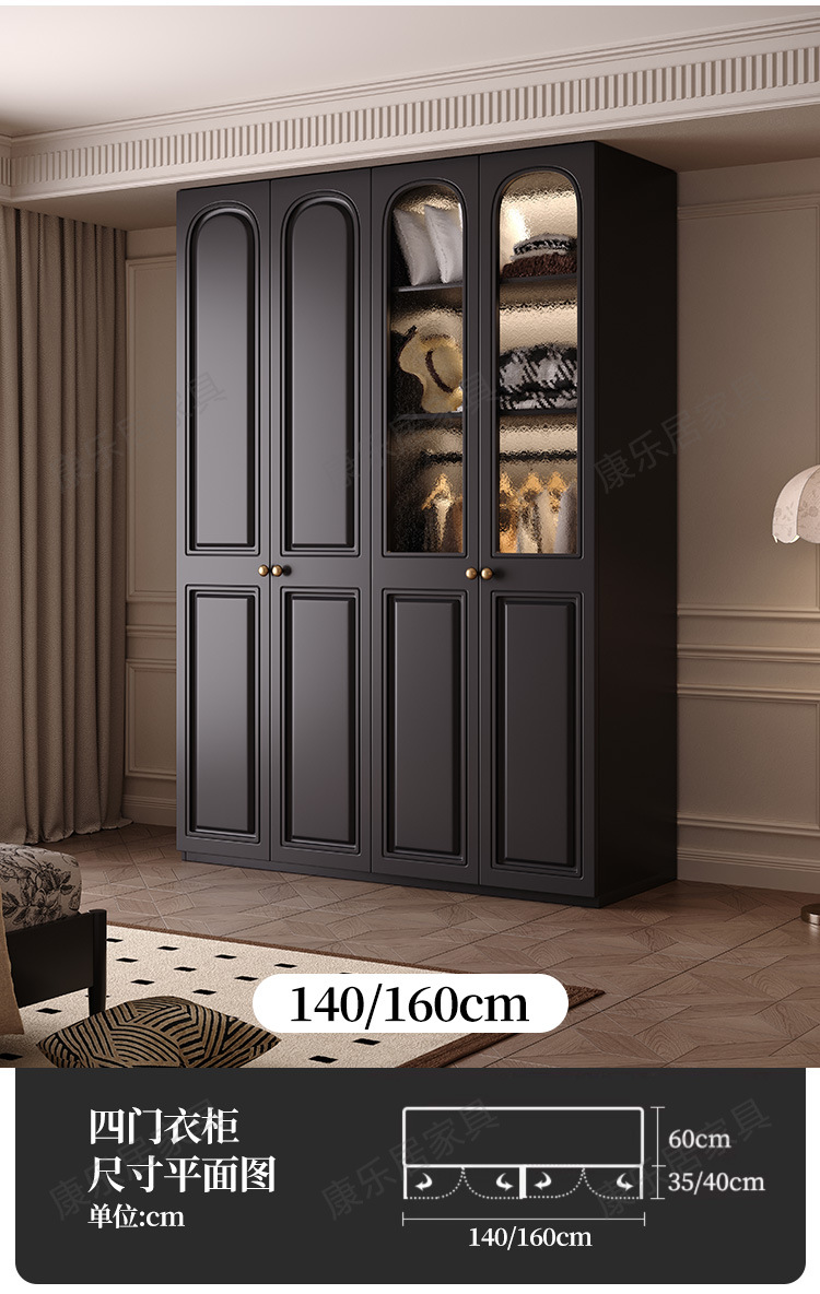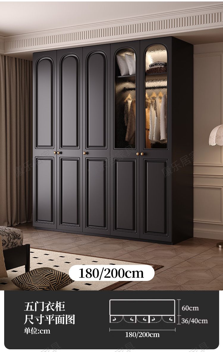 프랑스 복고풍 스타일의 옷장 유럽 소나무 판재 검은색 캐비닛 홈 침실 임대 작은 아파트 경제적인 옷장스토어 가기