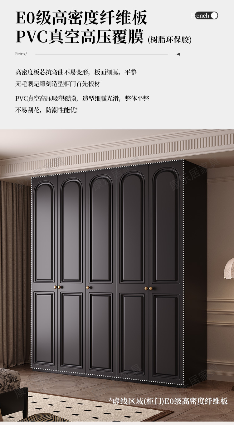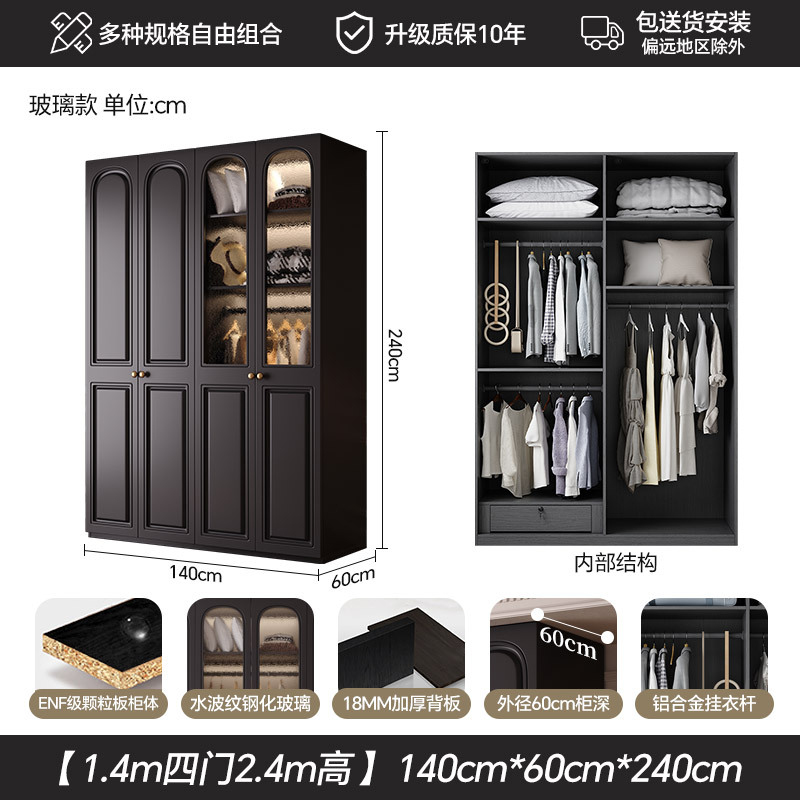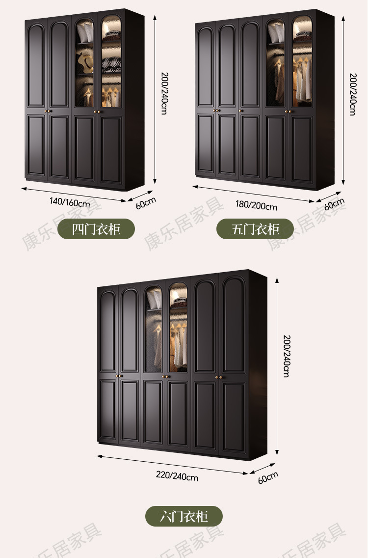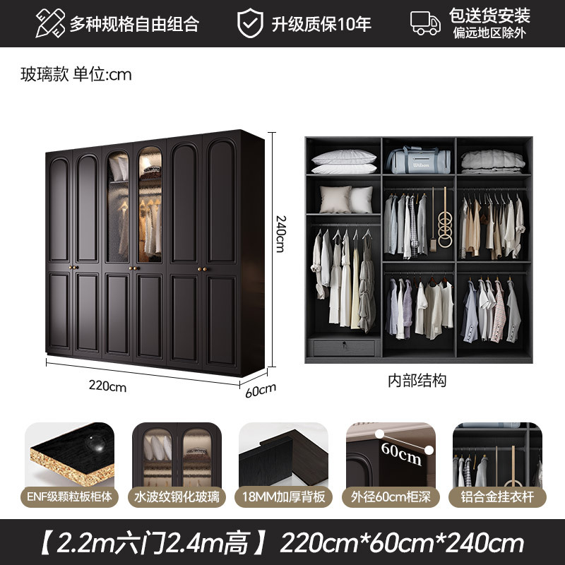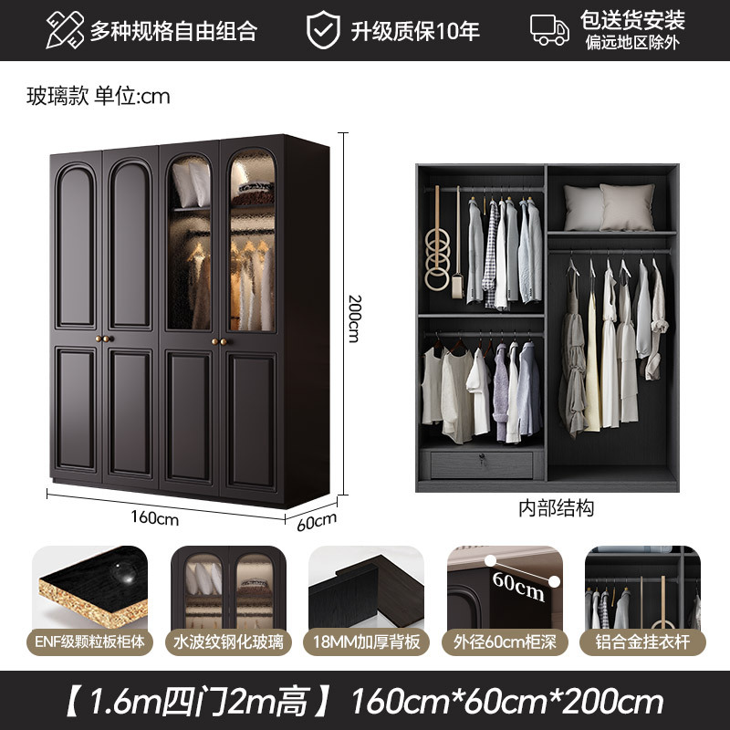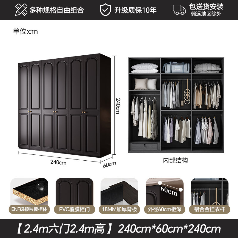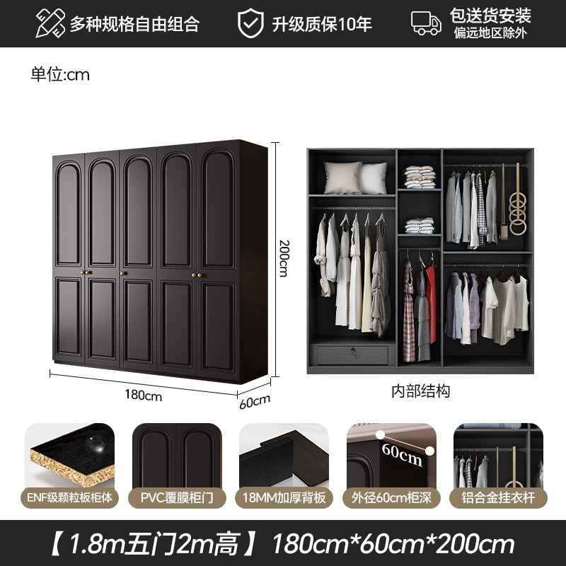 프랑스 복고풍 스타일의 옷장 유럽 소나무 판재 검은색 캐비닛 홈 침실 임대 작은 아파트 경제적인 옷장스토어 가기