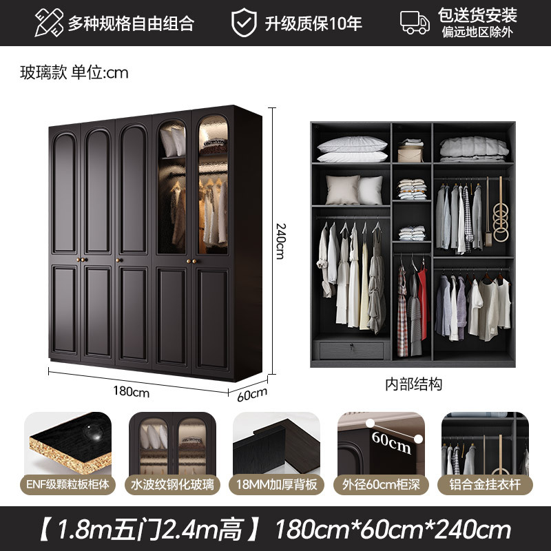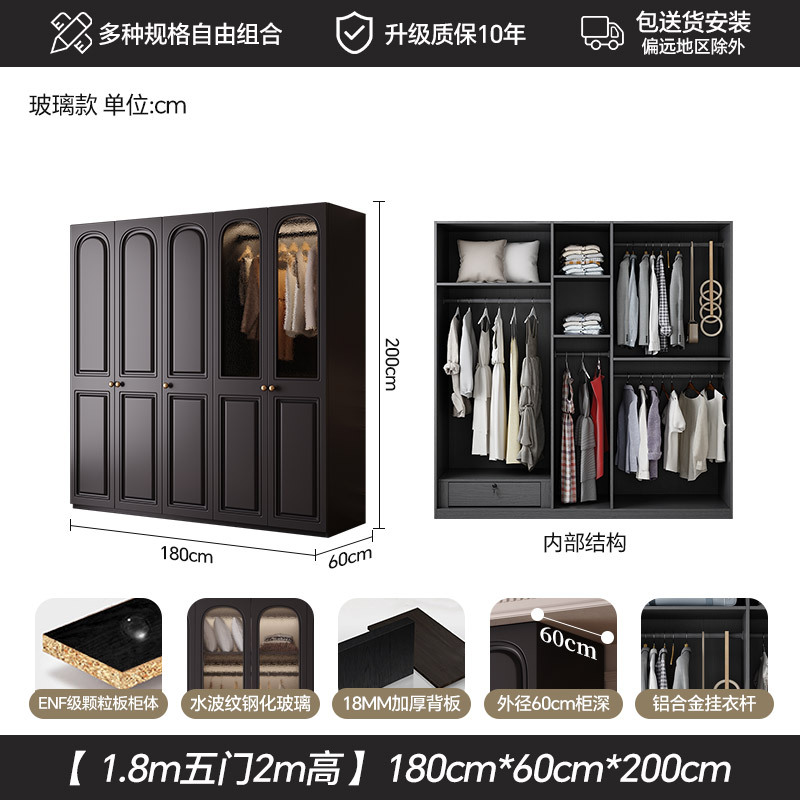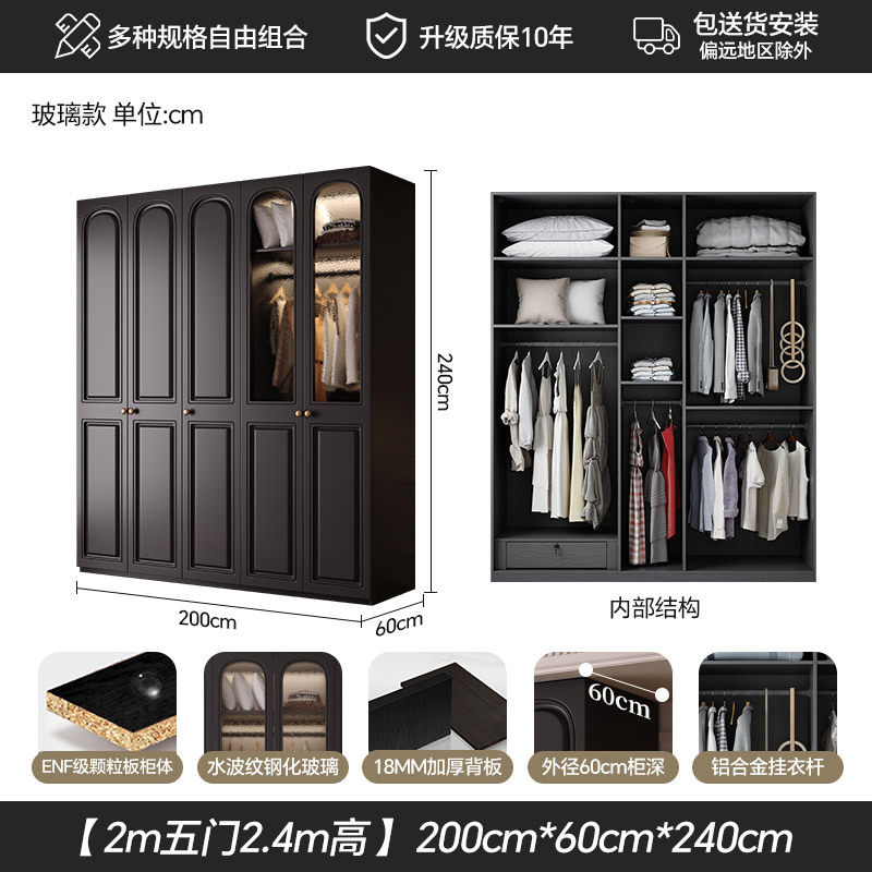 프랑스 복고풍 스타일의 옷장 유럽 소나무 판재 검은색 캐비닛 홈 침실 임대 작은 아파트 경제적인 옷장