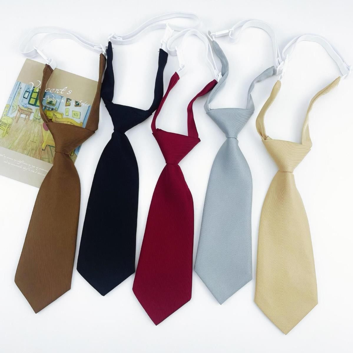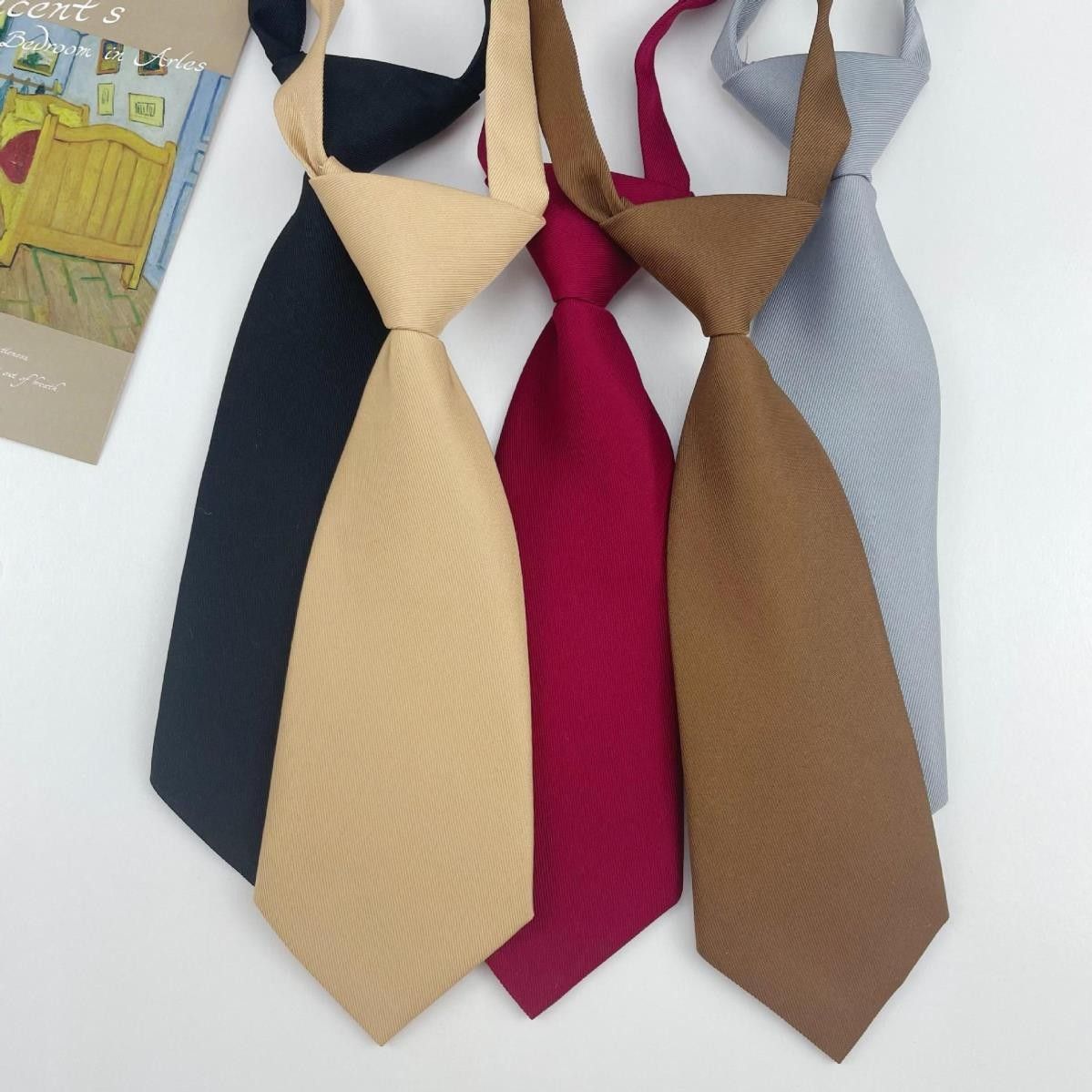 게으른 여성을 위한 초짧은 홈메이드 작은 넥타이, 귀여운 컬리지 스타일, 솔리드 컬러, 레트로 브라운, 블랙, 그레이, 버건디